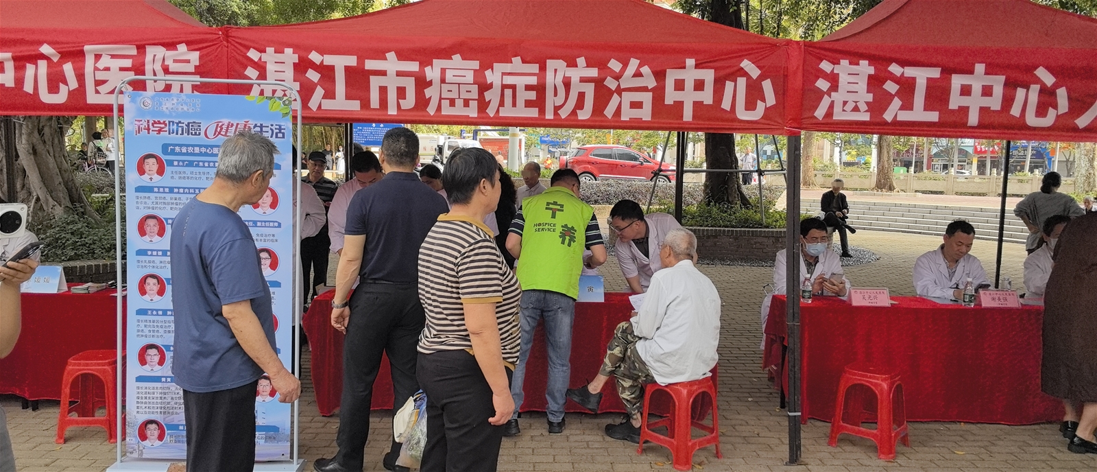 广东医科大学附属医院肿瘤医院及宁养院各专家在现场为市民们提供专业的健康咨询,指导大家健康生活,科学防癌,远离癌症;护士们为市民们测量血压,宁养院人员派发健康教育宣传册及宁养服务宣传单张,宣传癌症防治知识,增进市民提高肿瘤防治的理念。