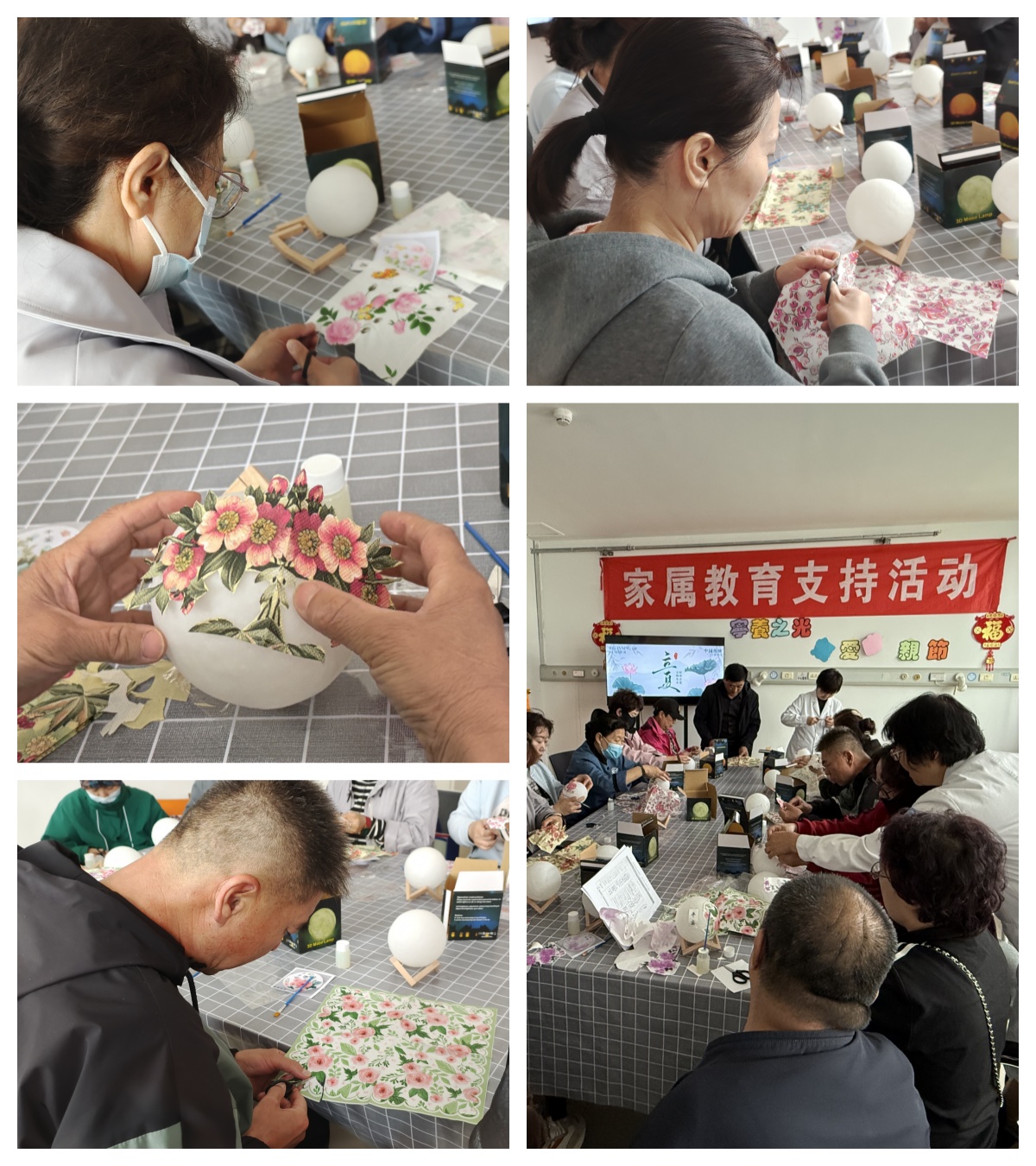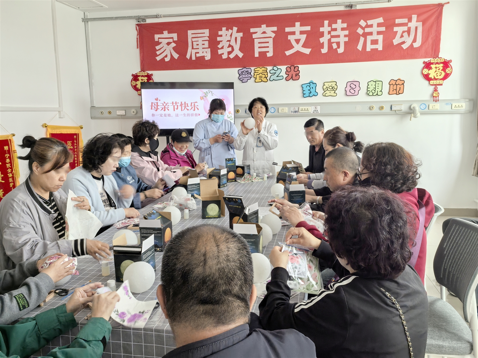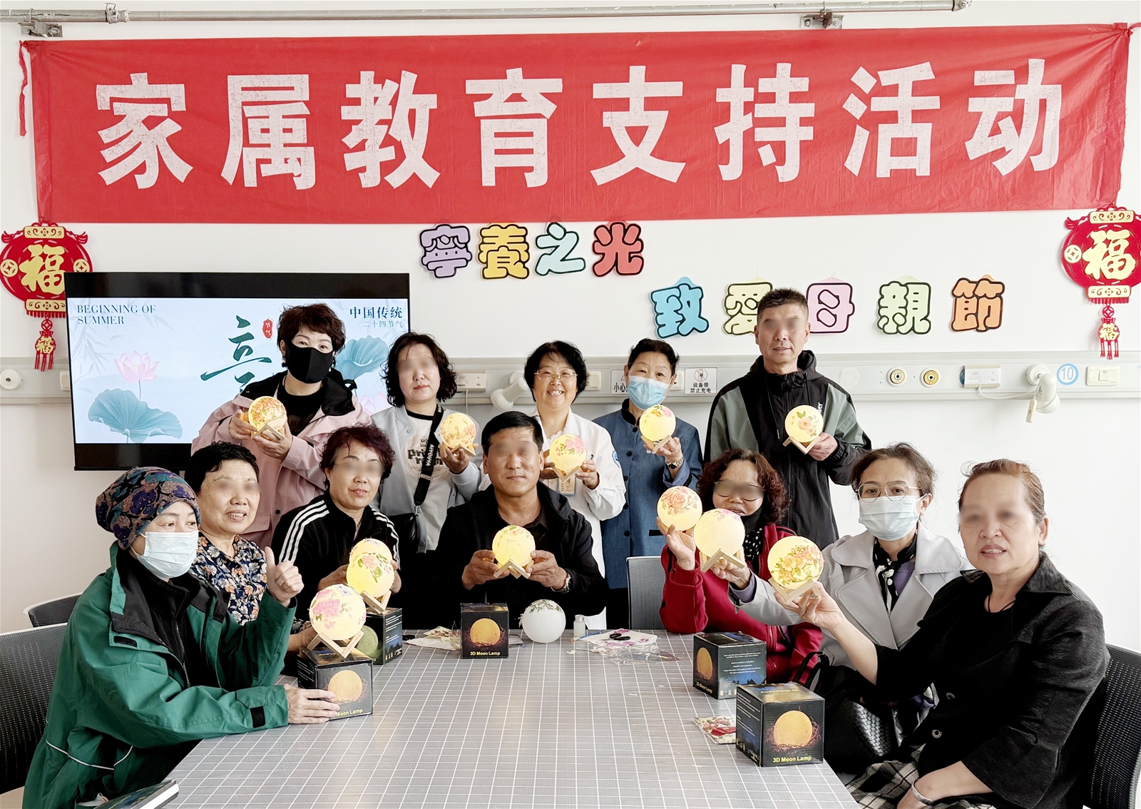 随后,宁养院社工张海霞老师组织家属们参与母亲节小夜灯制作活动。现场氛围温馨热烈,家属们积极投入,通过剪花纸、粘花纸、组装等环节,一盏盏精美的小夜灯很快诞生。这些承载着心意的小夜灯,寄托着宁养院对每个家庭伟大母亲的敬意,也为庆祝母亲节增添了一份别样的温暖。