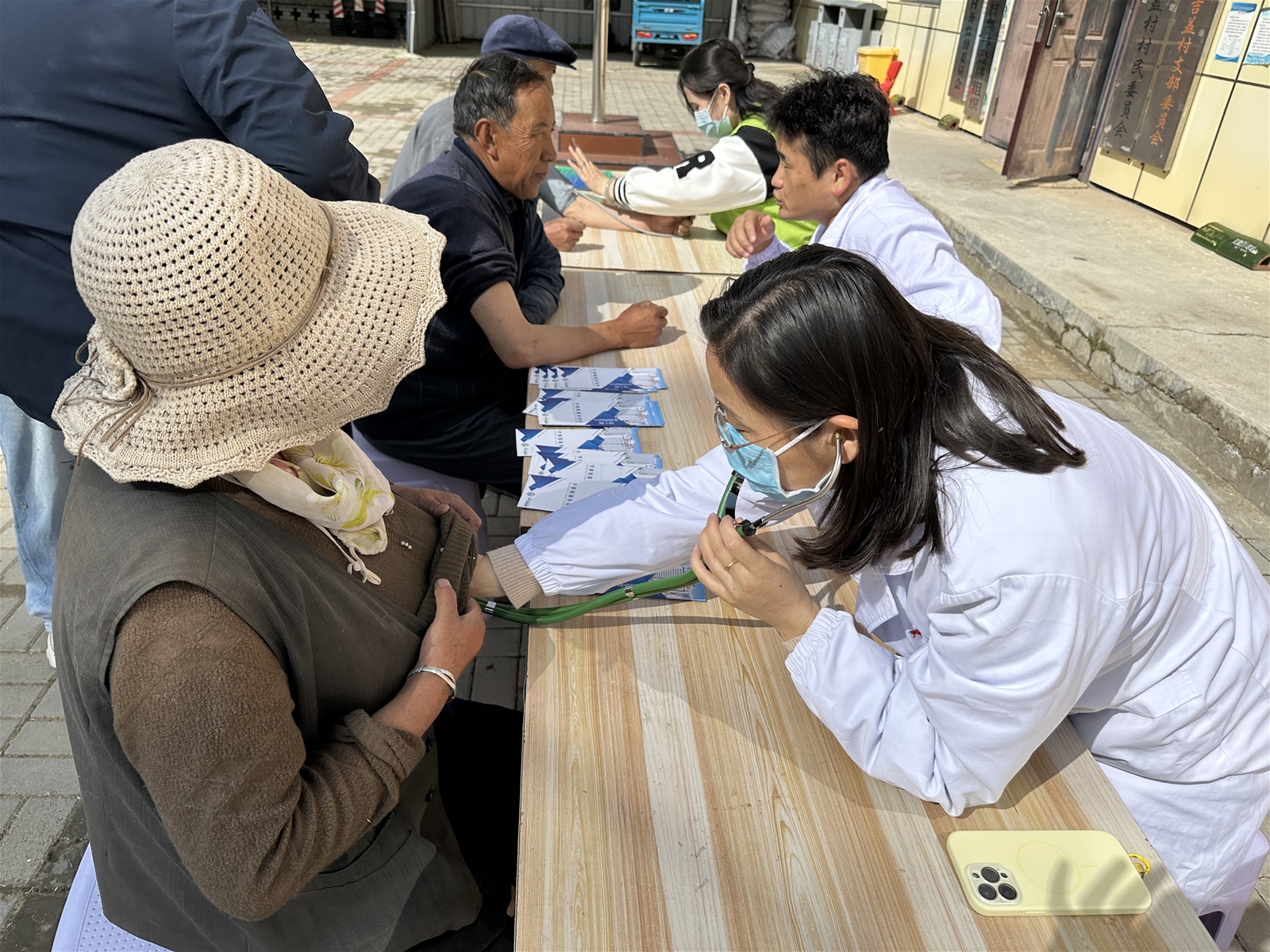 活动当天,青海大学附属医院的义诊队伍成员有内分泌科马生花副主任医师、全科医学科杜明亭医生、心电图室马小聘医生、宁养院吴欢医生和赵隆香社工。义诊处位于文化广场,而宁养服务指导区设为核心区域,与健康问诊区、健康宣教区形成联动,精准聚焦乡村老人“急难愁盼”的健康问题,尤其是关于癌症晚期疼痛患者的居家照护需求。