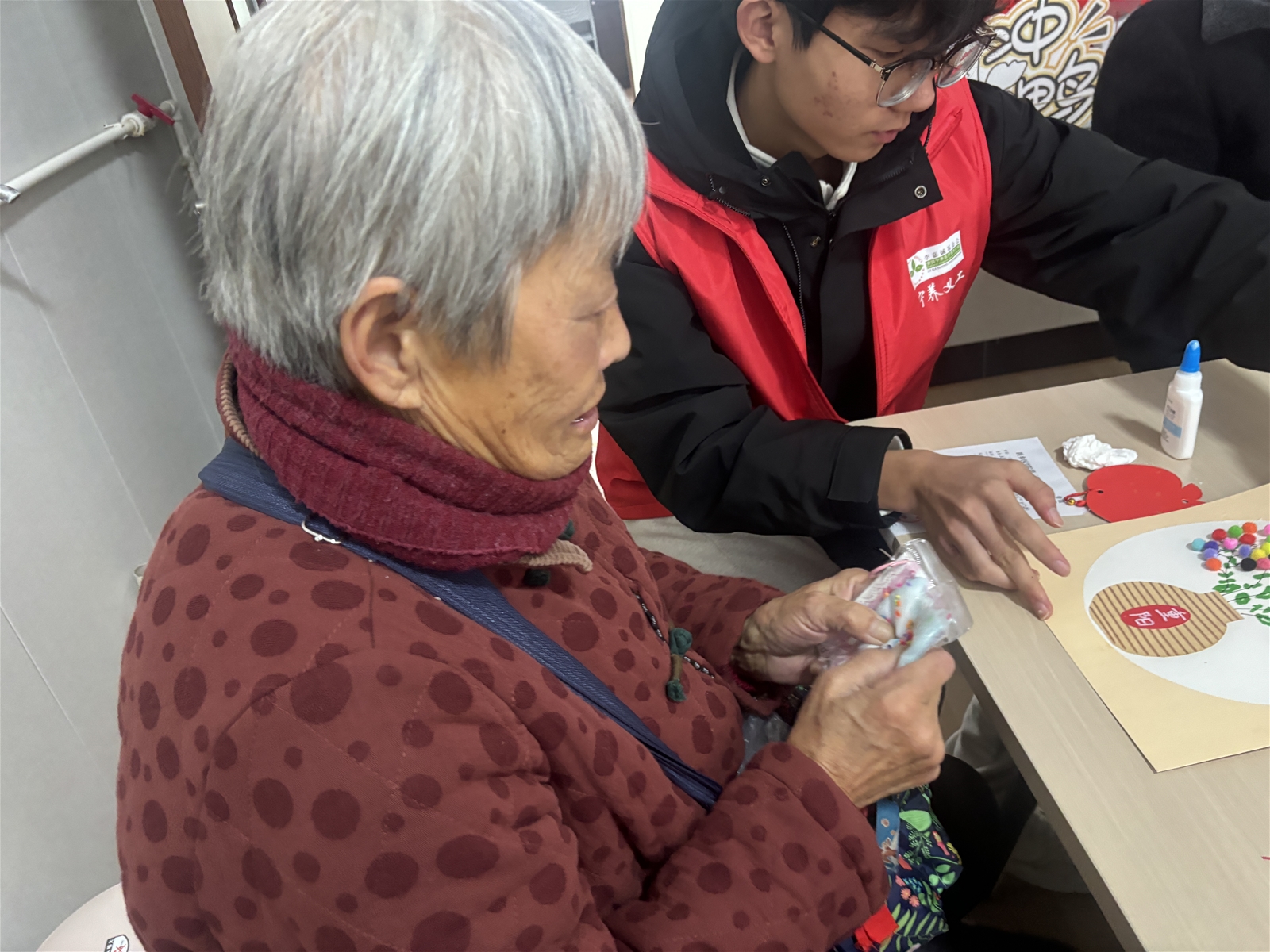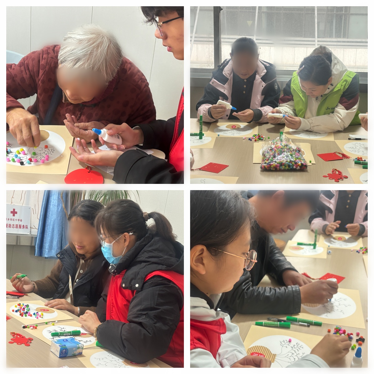活动现场,“DIY 暖心卡片”环节率先拉开帷幕。家属们可自主挑选象征温暖的彩色毛毛球,搭配心仪的图画,为卡片添加叶片装饰。柔软的毛毛球传递着治愈力量,也让家属在动手过程中逐渐放松心情,借由色彩与图案悄然流露内心的情感与期待。