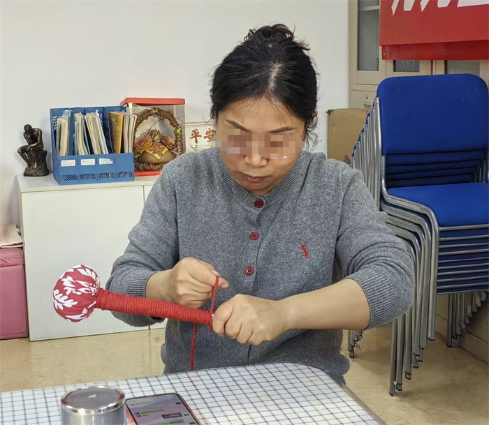 艾草锤制作环节成为整场活动的“暖心高潮”。在义工们的耐心协助与专业指导下,家属们手持布料、艾草等材料,专注裁剪、细心填充、认真缝制,将对家人的牵挂与祝福融入每一针线。制作过程中,大家不时交流手工技巧、分享生活趣事,活动室里的欢声笑语取代了往日的焦虑,满是温馨与治愈。据悉,艾草锤兼具活血化瘀、温经散寒、缓解疲劳的功效,这份亲手制作的礼物,既是舒缓压力的“解压神器”,更成为传递亲情与温情的特殊载体。作品完成后,主持人逐一点评鼓励,让每位参与者都收获了满满的成就感。
