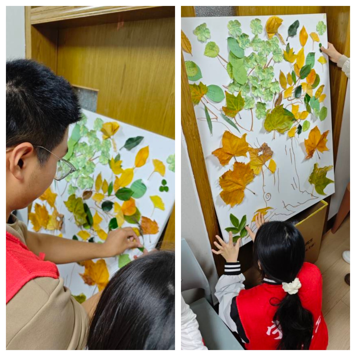 在出发前,宁养院社工特意为新义工布置了一项特殊任务:每位同学在徒步时需捡拾一片绿叶和一片黄叶,这一任务引发了义工们的强烈好奇与期待。当义工们顺利抵达终点宁养院,看见宁养院的桌子上早已摆放好五样小零食——话梅糖、巧克力、棒棒糖、辣条和雪饼。在社工的引导下,每位义工领取自己心仪的零食,随后,在分享环节中社工邀请义工们畅谈他们对 “绿叶、黄叶”以及“五样小零食”背后的意义。