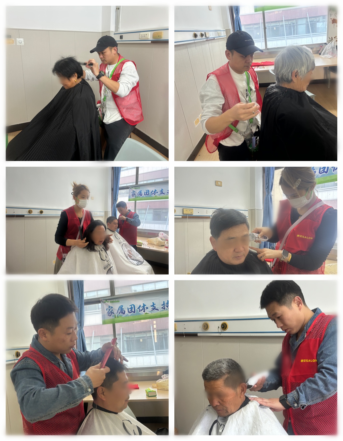 在照料晚期癌症患者的漫长岁月中,家属们往往将全部精力倾注于患者的康复与陪伴,却时常忽略了自身的日常照料。为切实解决家属们的实际需求,宁养院特别策划了此次公益服务,邀请阿班、张鹏、兰兰三位拥有多年从业经验的专业理发师坐镇,为家属们提供免费理发服务。活动前期,宁养院通过多种渠道广泛宣传,不仅在医院内科楼一楼大厅、肿瘤中心摆放宣传海报,还借助门诊播放器滚动播报活动信息,确保有需求的家属能够及时知晓。