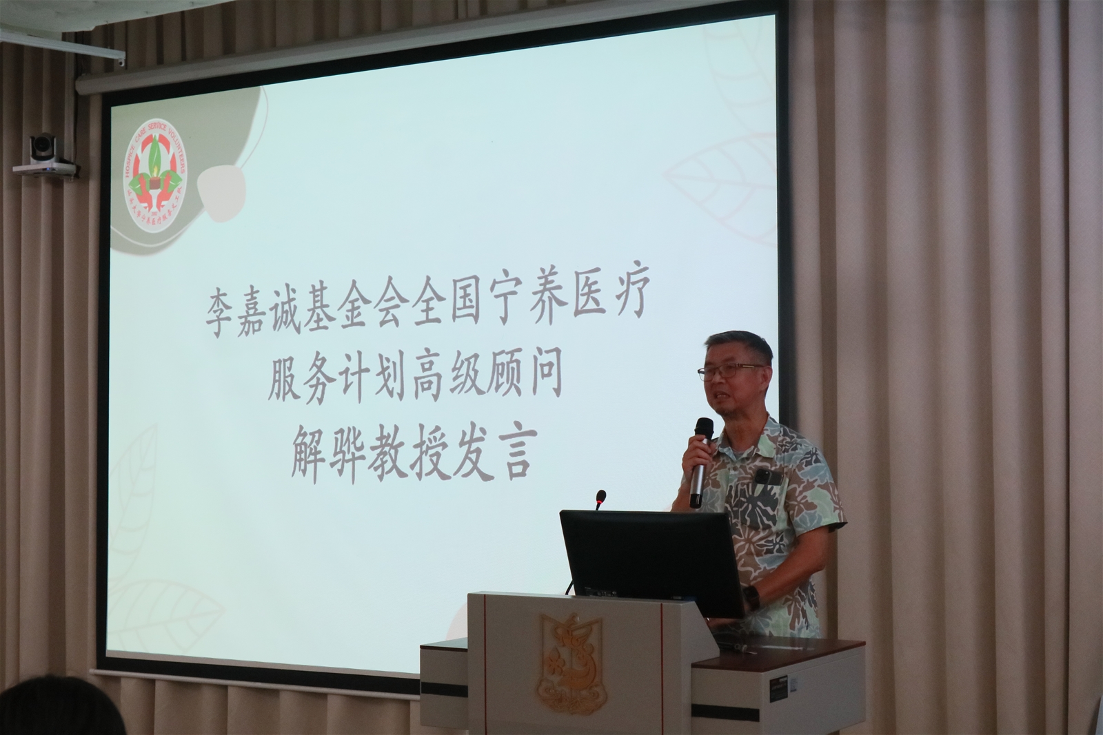 罗敏洁医生首先在会上发言。她回顾了汕头大学宁养医疗服务义工队作为全国首支服务宁养患者的大学生志愿团队二十四年的发展历程,并深情重温了李嘉诚先生到访汕头大学医学院老校区时为医学生们题赠“医德医术兼优,爱心奉献济世”的深切寄语。鼓励宁养义工们常怀关爱之心、践行医者誓言,在志愿服务中重视对患者的亲身陪伴,深刻体会“有时治愈,常常缓解,总是安慰”的医学人文内涵。