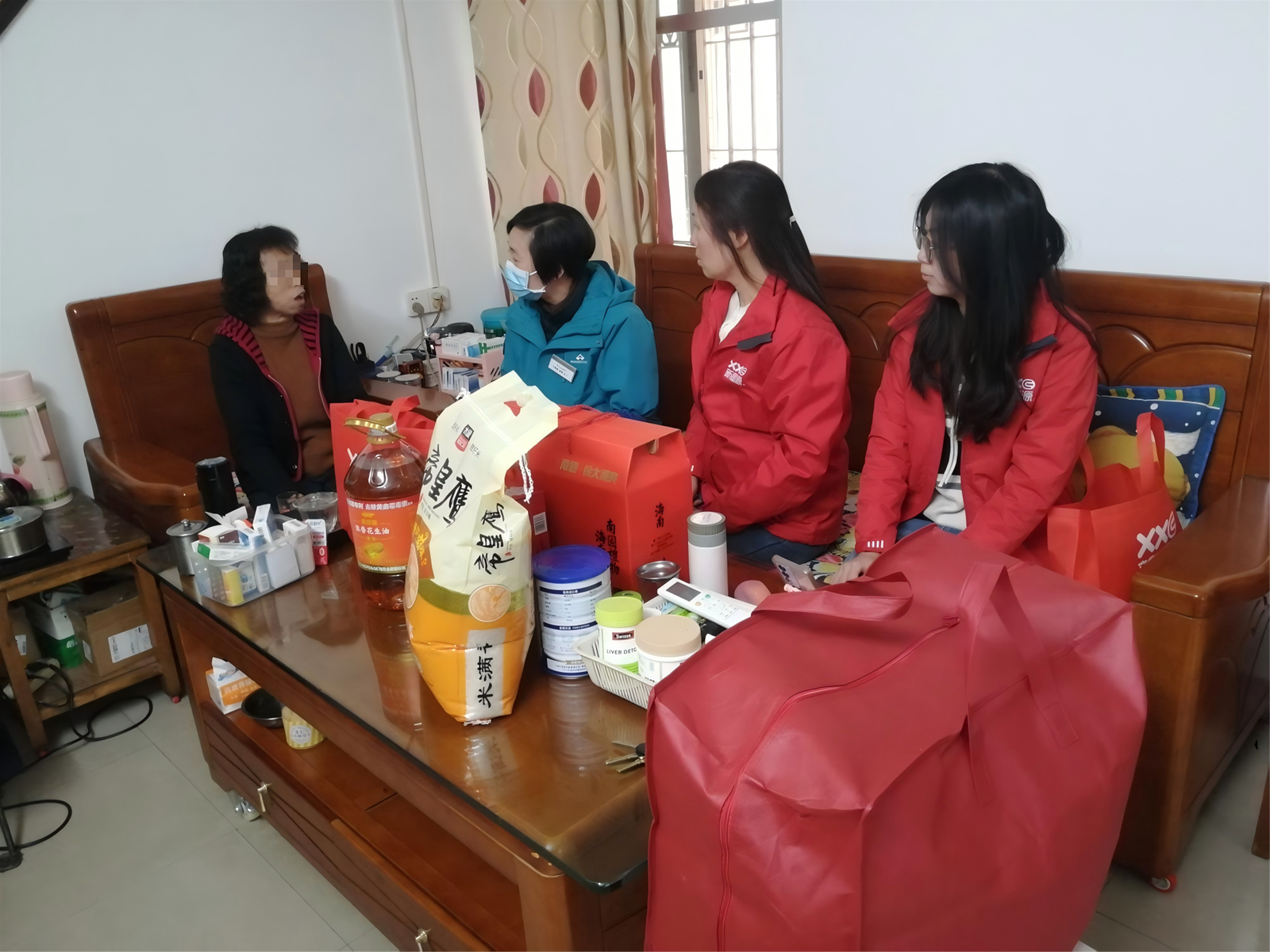 2025年2月4日,立春刚过,春节的脚步日益临近。为了让处于困境中的晚期癌症患者家庭感受到节日的温暖与社会的关爱,粤北人民医院宁养院社工带领两位社会义工,顶着冬日的寒风,共同开展了春节入户慰问活动,为两户贫困患者家庭送去了米、油和牛奶等生活物资及社会关爱。
