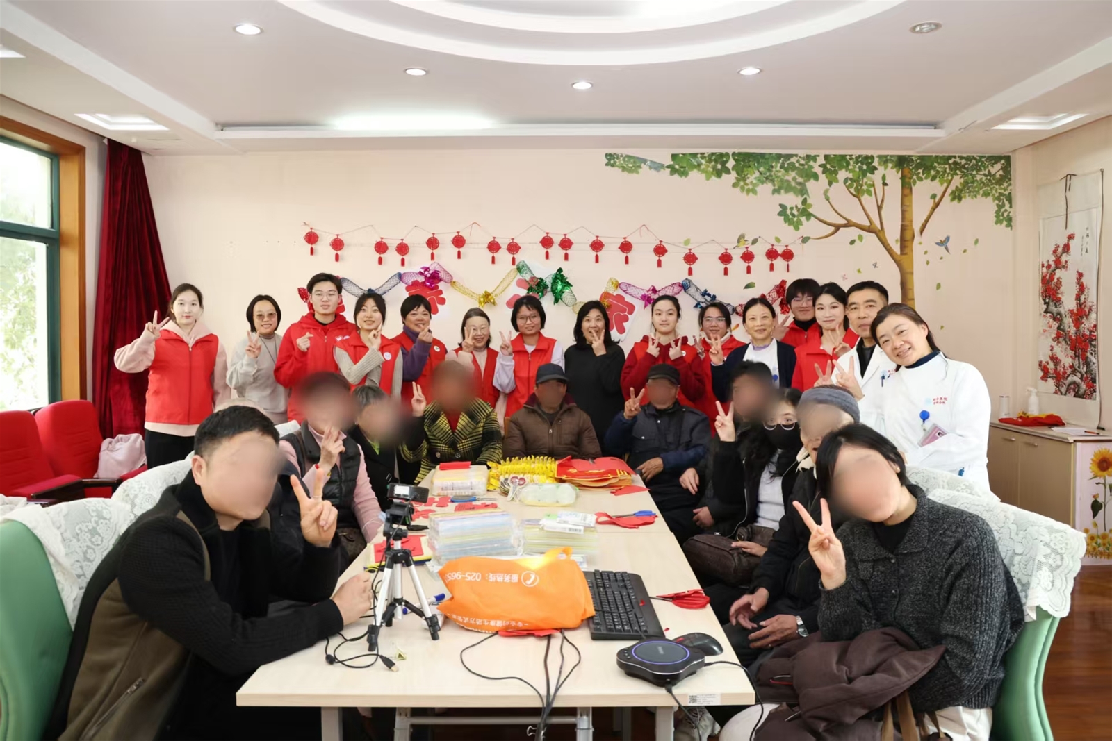 活动尾声,“福剪春风·巧手传春”环节温情上演。志愿者协助家属执剪裁红,纸屑纷飞间,一幅幅寓意吉祥的窗花跃然指尖。医护人员与志愿者共同送上春联、挂面,祈愿新年顺遂安康。镜头定格下全家福般的笑脸,将此刻温馨永久珍藏。