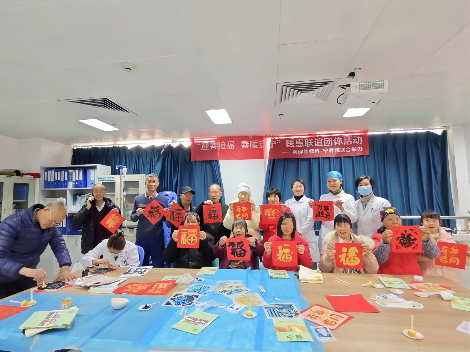 在这里,疾病不再是唯一的话题,鼓励与赞美在金色的“福”字间流转。大家全情投入,专注于当下的创作,暂时忘却了病痛的困扰。
