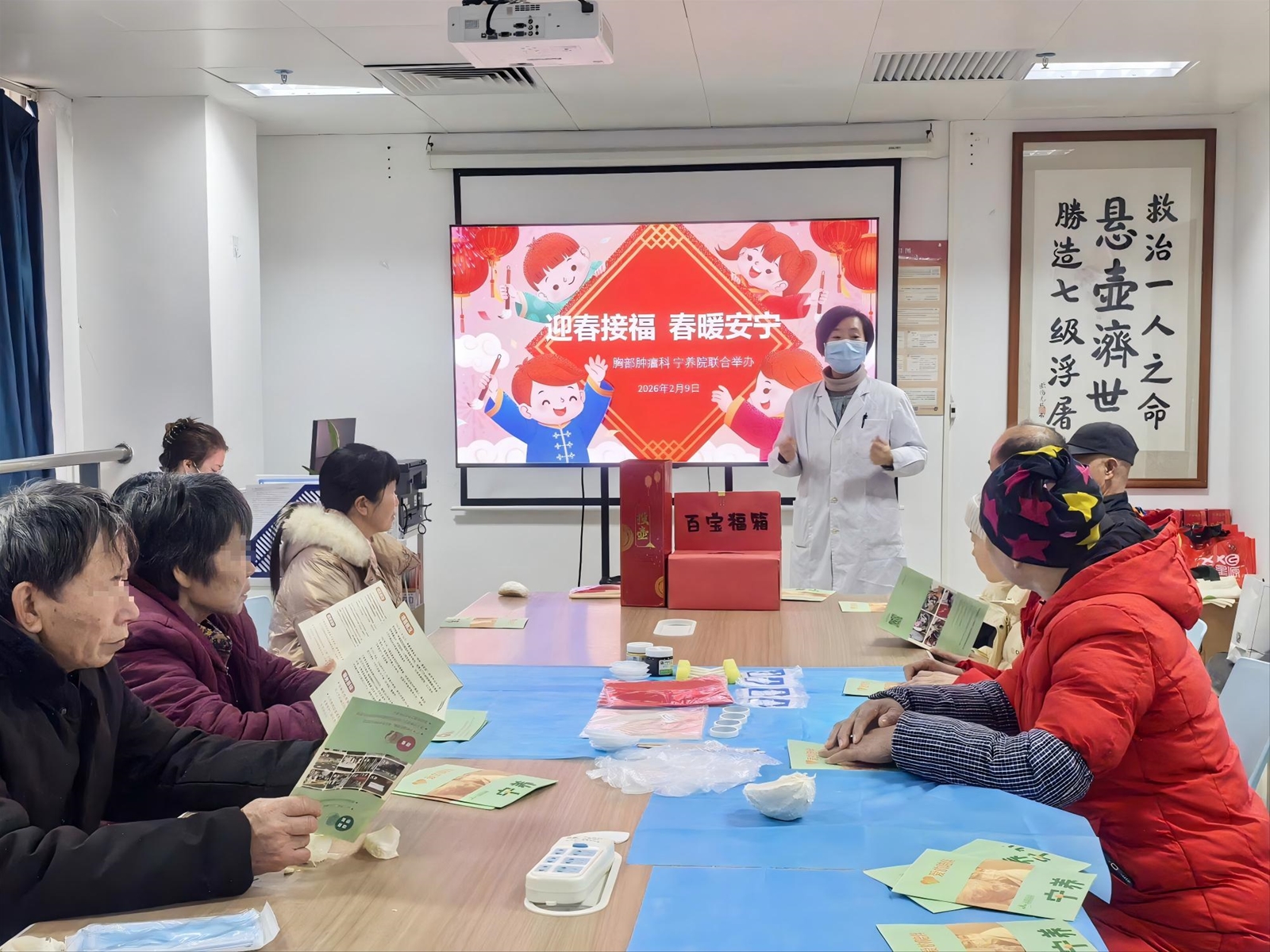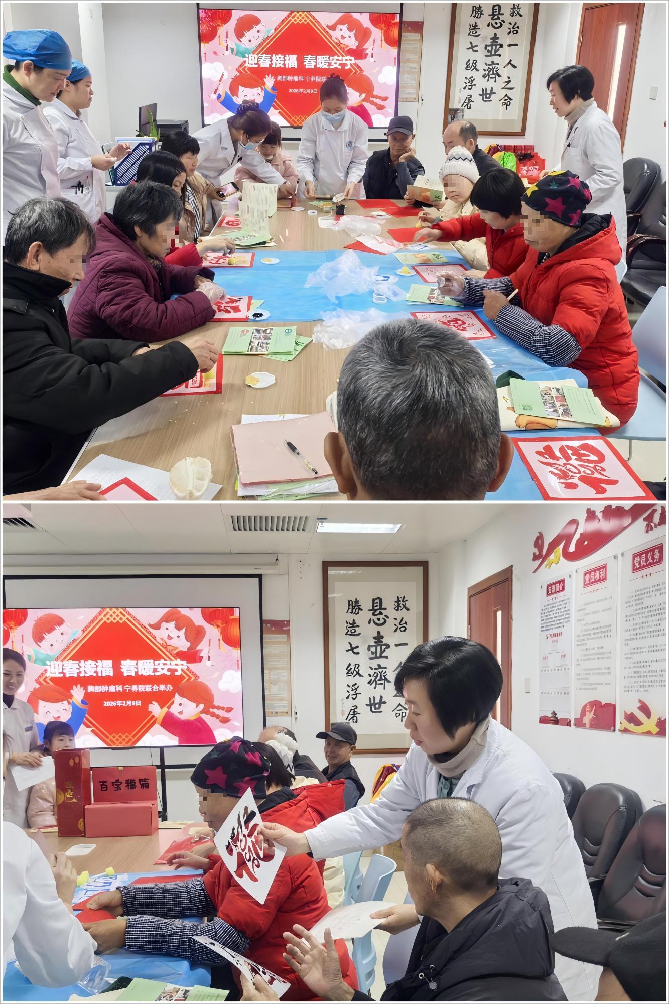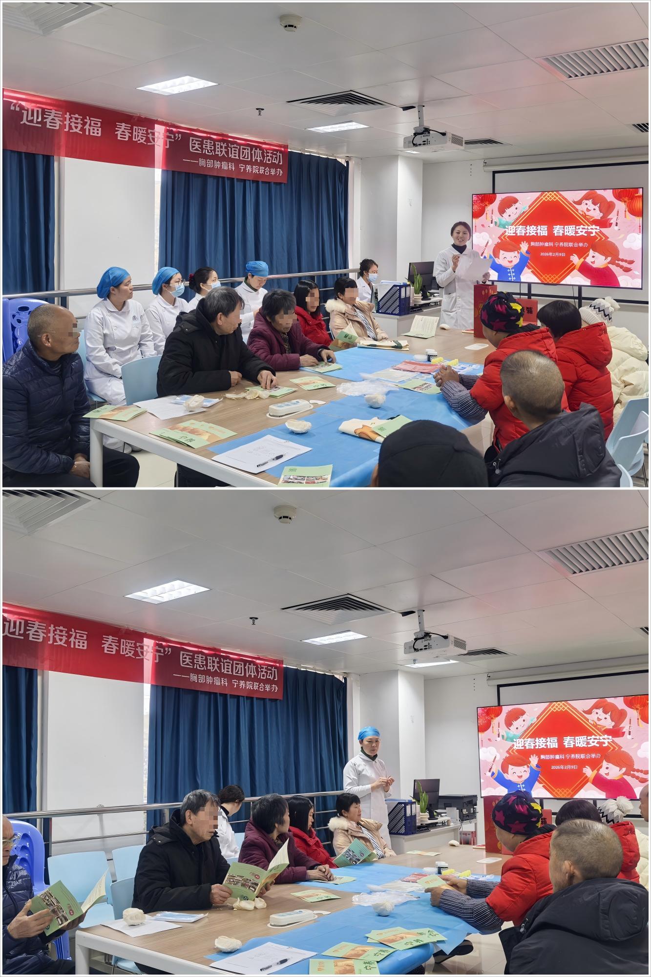冬去春来,岁序更替。为了缓解患者及家属的心理压力,营造温馨祥和的节前氛围,2026年2月9日,粤北人民医院宁养院联合所在医院胸部肿瘤科,在医院活动室共同举办了“迎春接福 春暖安宁”为主题的医患联谊活动。