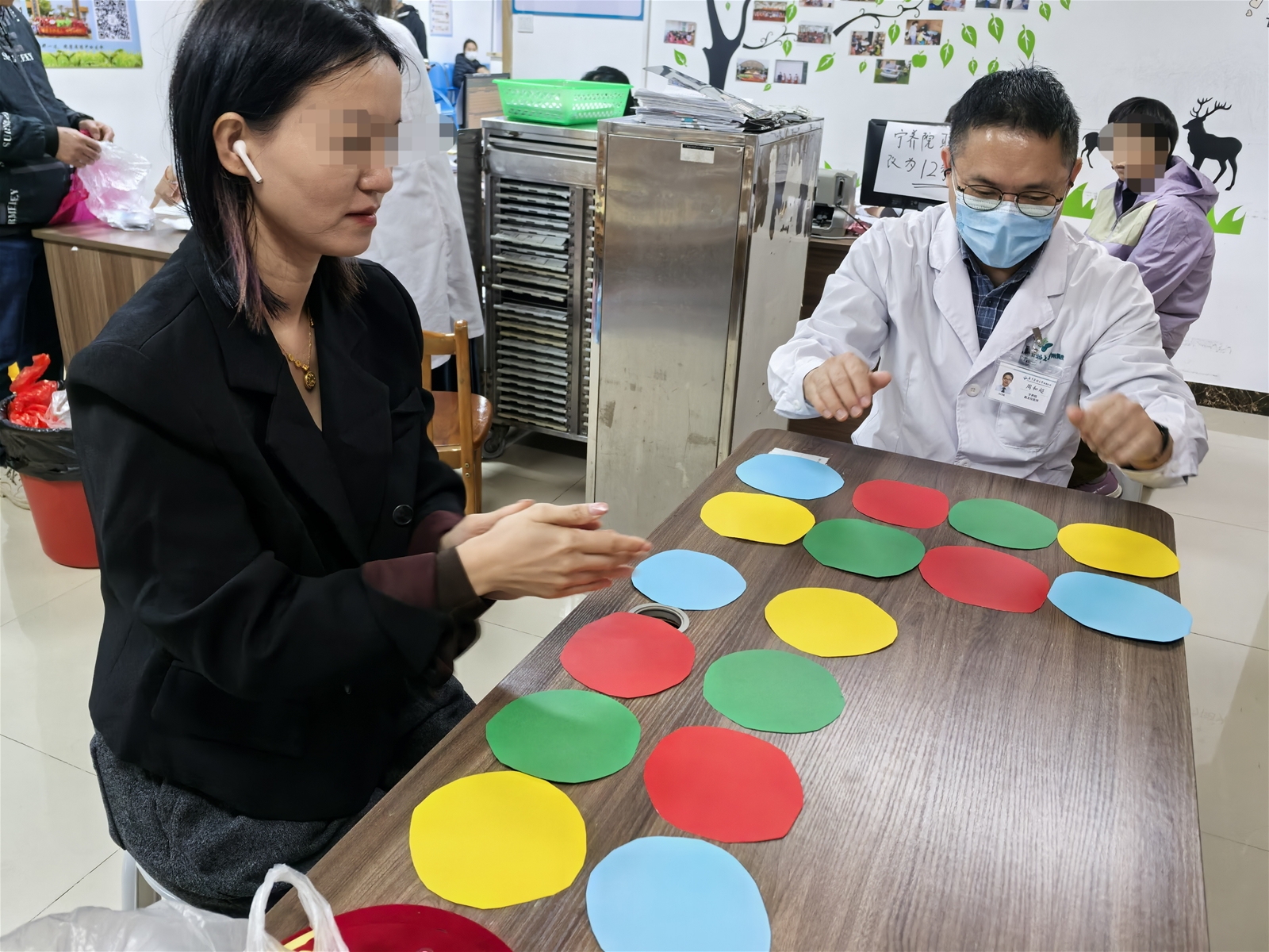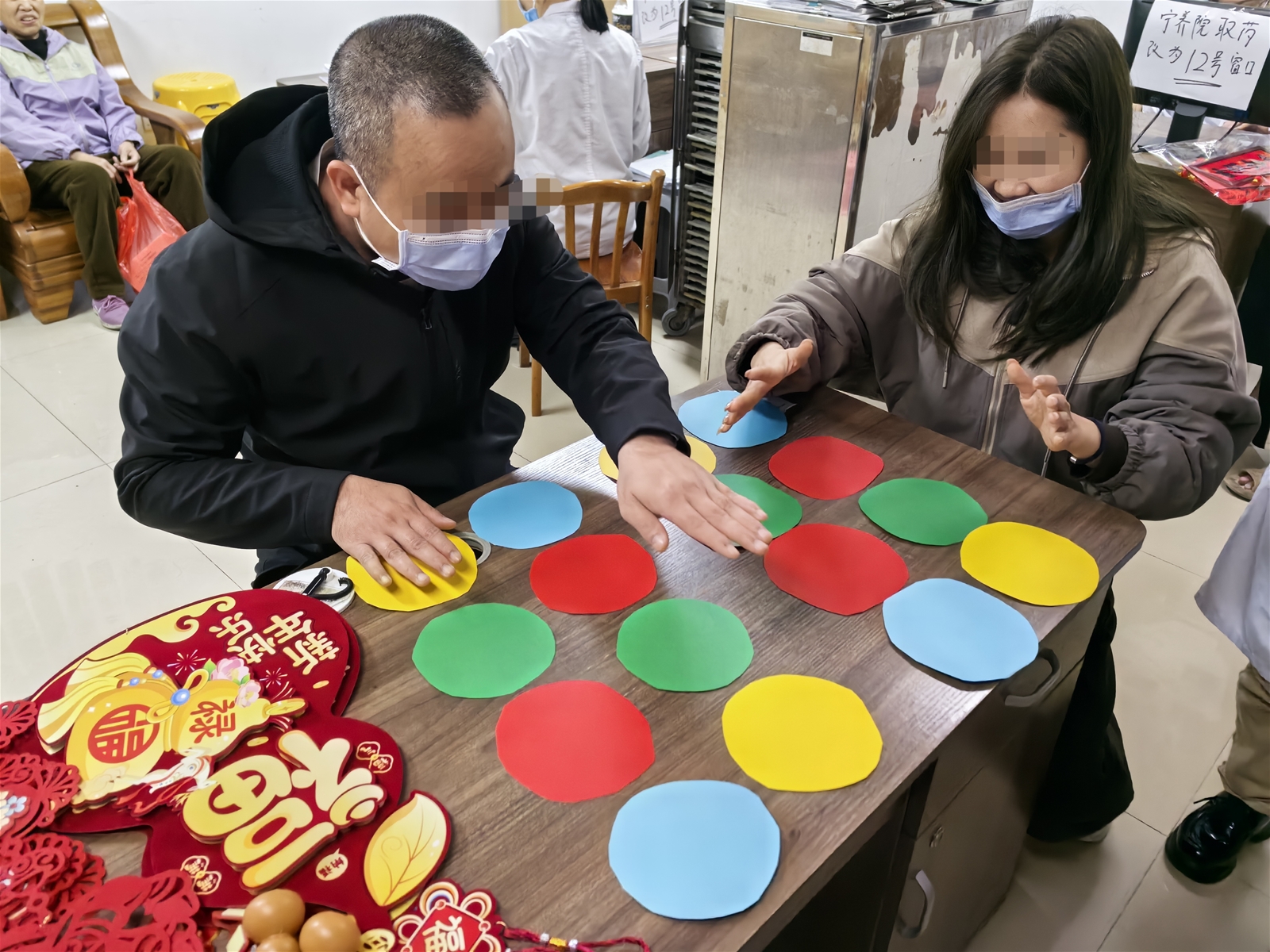 活动伊始,一场趣味十足的“听口令看颜色拍拍”游戏迅速点燃现场氛围。工作人员带领大家跟随口令互动拍手,简单有趣的节奏不仅快速拉近了彼此的距离,还能灵活活动双手、舒展身心。大家跟着节奏拍手、欢笑,原本安静的现场瞬间变得热闹温馨。不少家属兴致盎然,纷纷表示游戏简单易学、轻松有趣,要带回家和家人一起玩,让日常照护生活也多一份欢乐与活力。
