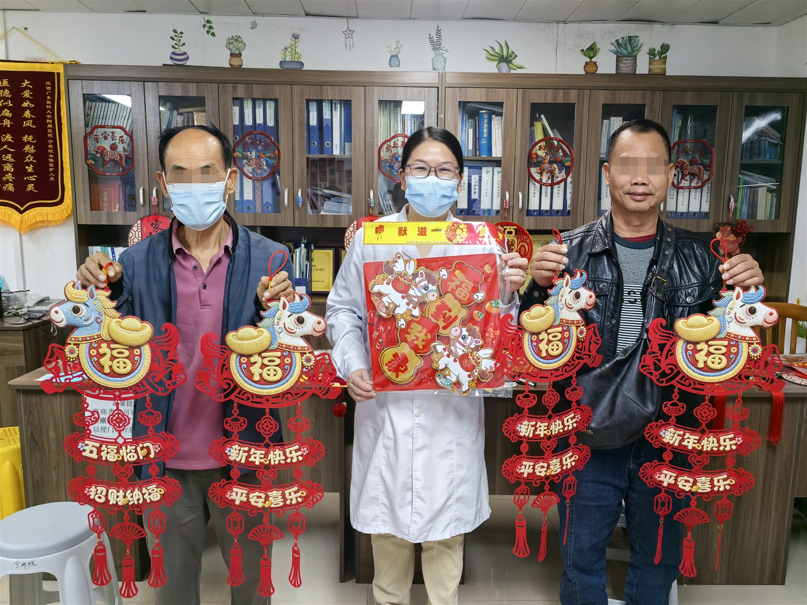为增添年味,工作人员还为大家准备了精美的新年祝福挂件、喜庆福字贴等新春礼品。大家手持挂件与福字,互相传递祝福、分享喜悦,现场洋溢着浓浓的年味儿。患者与家属们脸上洋溢着笑容,彼此道着新年好,温馨的画面让整个活动现场暖意融融。
