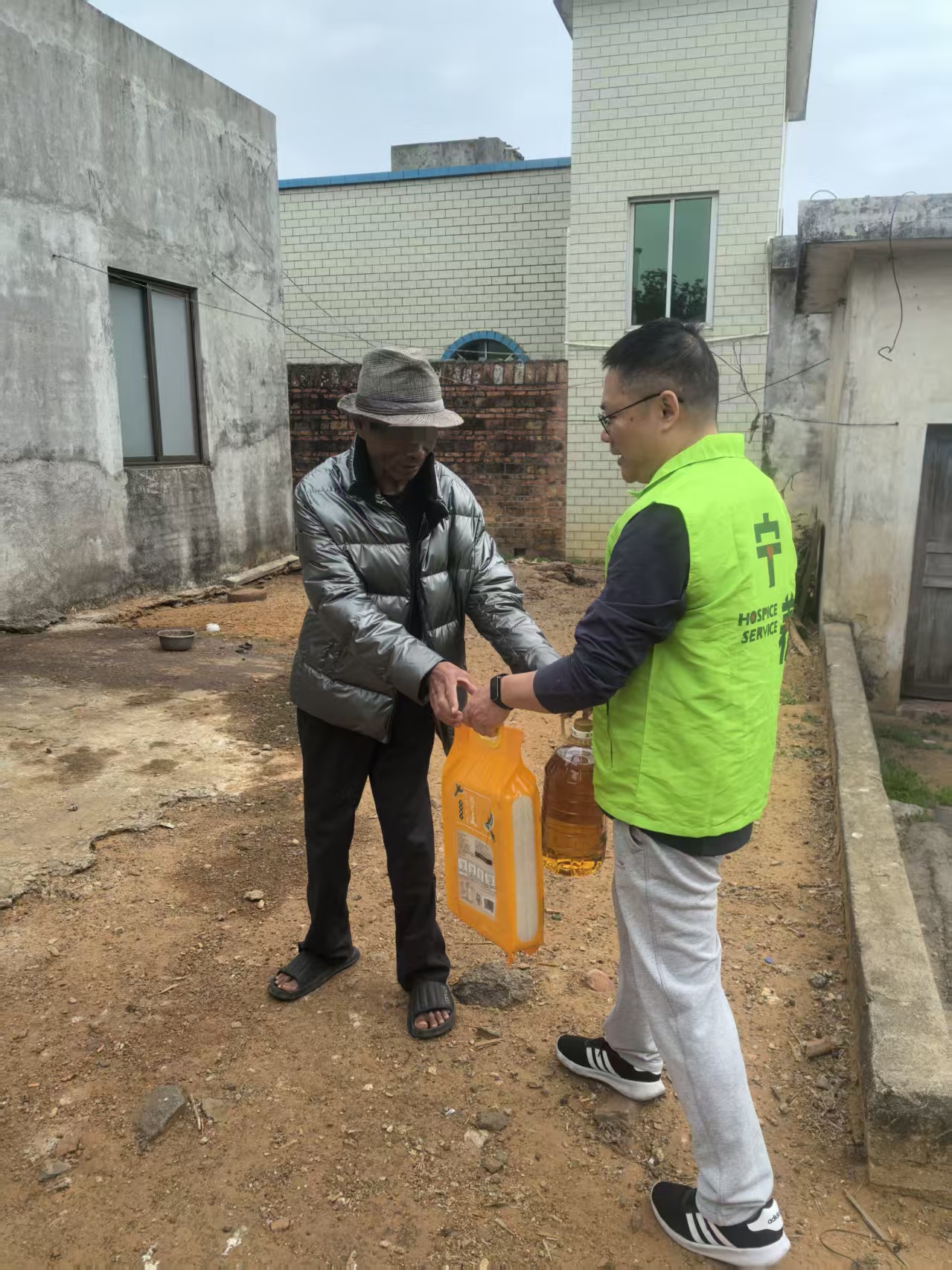 此次走访为期6天,团队分批前往辖区内多位居家宁养患者家中。每到一户,宁养院周和超主任详细询问患者病情变化、疼痛控制与用药情况,现场调整治疗方案,叮嘱家属科学照护要点;孙碧兰护士长为患者进行生命体征监测、伤口护理与居家康复指导,耐心解答护理疑问;宁养社工与爱心企业代表与患者及家属促膝交谈,倾听心声、疏导情绪,送上新春礼包、粮油物资、春联福字与慰问金,把实实在在的关怀送到床头、暖进心里。