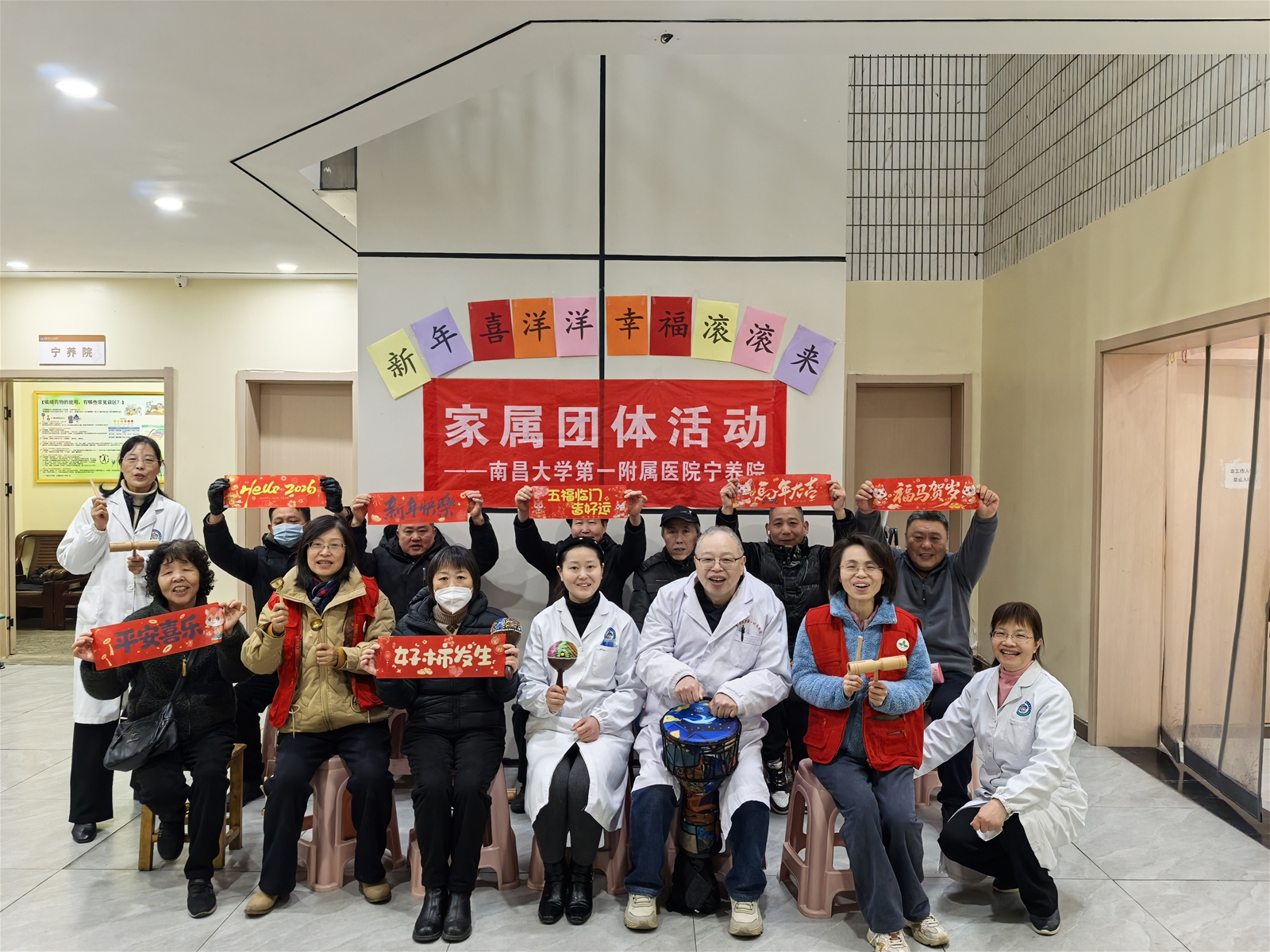 2026年2月12日,南昌宁养院候诊大厅内暖意融融,一场主题为“新年喜洋洋·幸福滚滚来”的迎新春家属团体活动在此温馨启幕。活动旨在通过轻松愉悦的互动形式,为长期陪伴患者的家属们舒缓压力、传递温暖,让大家在浓浓的年味中感受新春的喜悦与关怀。