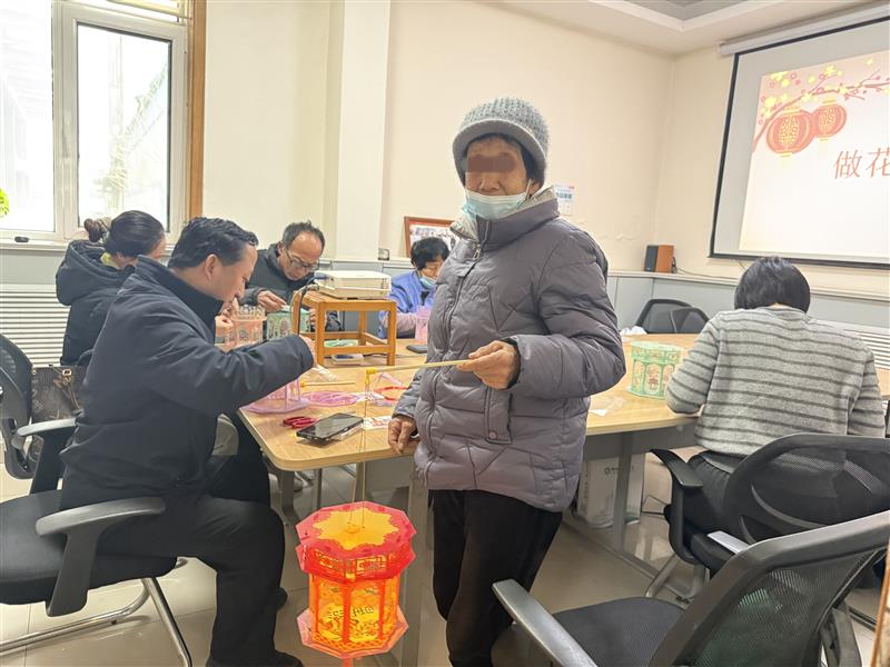 制作现场暖意融融。家属们纷纷拿起材料,相互协作、彼此切磋,原本普通的碎片,在大家的巧手下逐渐变成一盏盏精致的花灯。欢声笑语间,平日里的疲惫悄然消散。“很久没这么放松了,和大家一起做花灯,感觉心里亮堂多了。”一位家属拿着亲手制作的花灯,脸上露出久违的笑容。花灯成型后,家属们点亮灯芯,暖黄的光晕映照在每个人的脸上,温馨而治愈。活动间隙,家属们还分享了照护过程中的点滴,相互鼓励、彼此慰藉,在交流中凝聚起前行的力量。