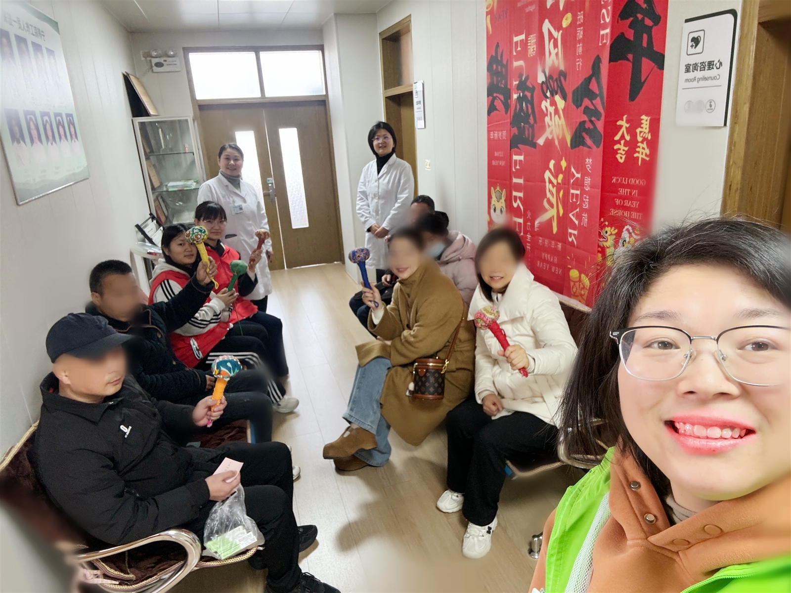 活动伊始,原本的号码牌互动破冰环节更换为艾锤手工制作,成为本次活动的暖心亮点。制作艾锤的过程中,长长的棉线需要家属们耐心环绕、用力拉紧,这一简单的动作成为家属释放压力的出口。大家专注地穿线、缠绕、拉紧,将照护患者过程中的疲惫、焦虑与压力融入每一个动作中,在动手实践的静谧时光里,让紧绷的情绪得到舒缓,彼此间也在轻声交流制作技巧中拉近距离,营造出温暖平和的氛围。