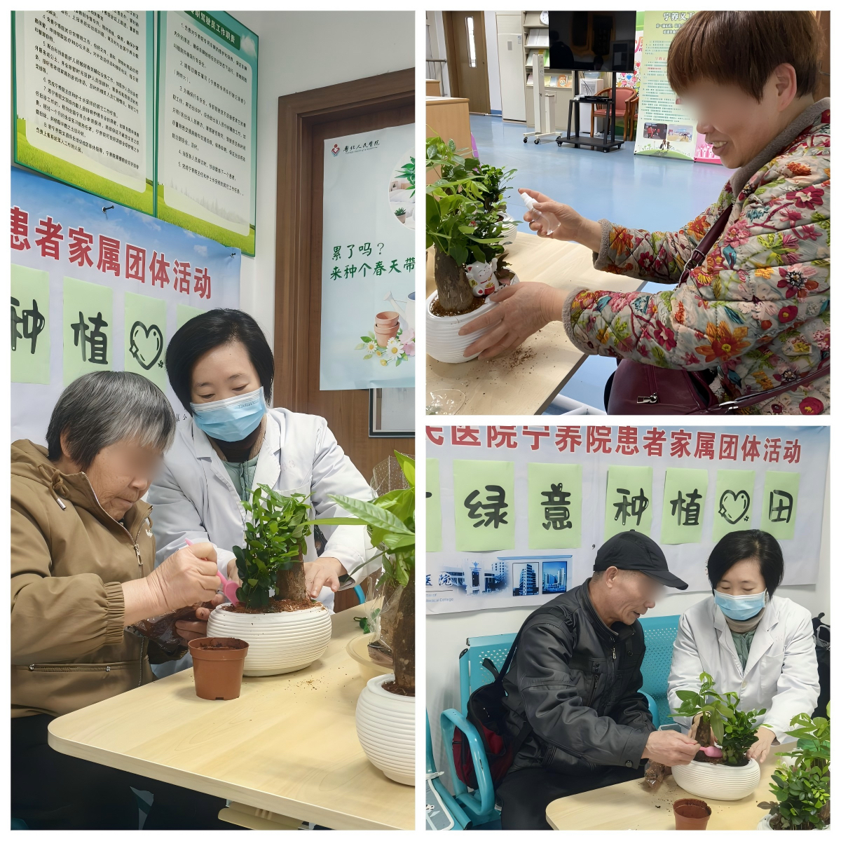 2026年3月6日,在植树节前夕,为了缓解宁养患者及家属的心理压力,粤北人民医院宁养院在门诊大厅开展了一场“方寸绿意,种植心跳”园艺疗愈活动。利用家属等候取药的碎片时间,社工为八位照顾者带来了一段温暖的喘息时光。