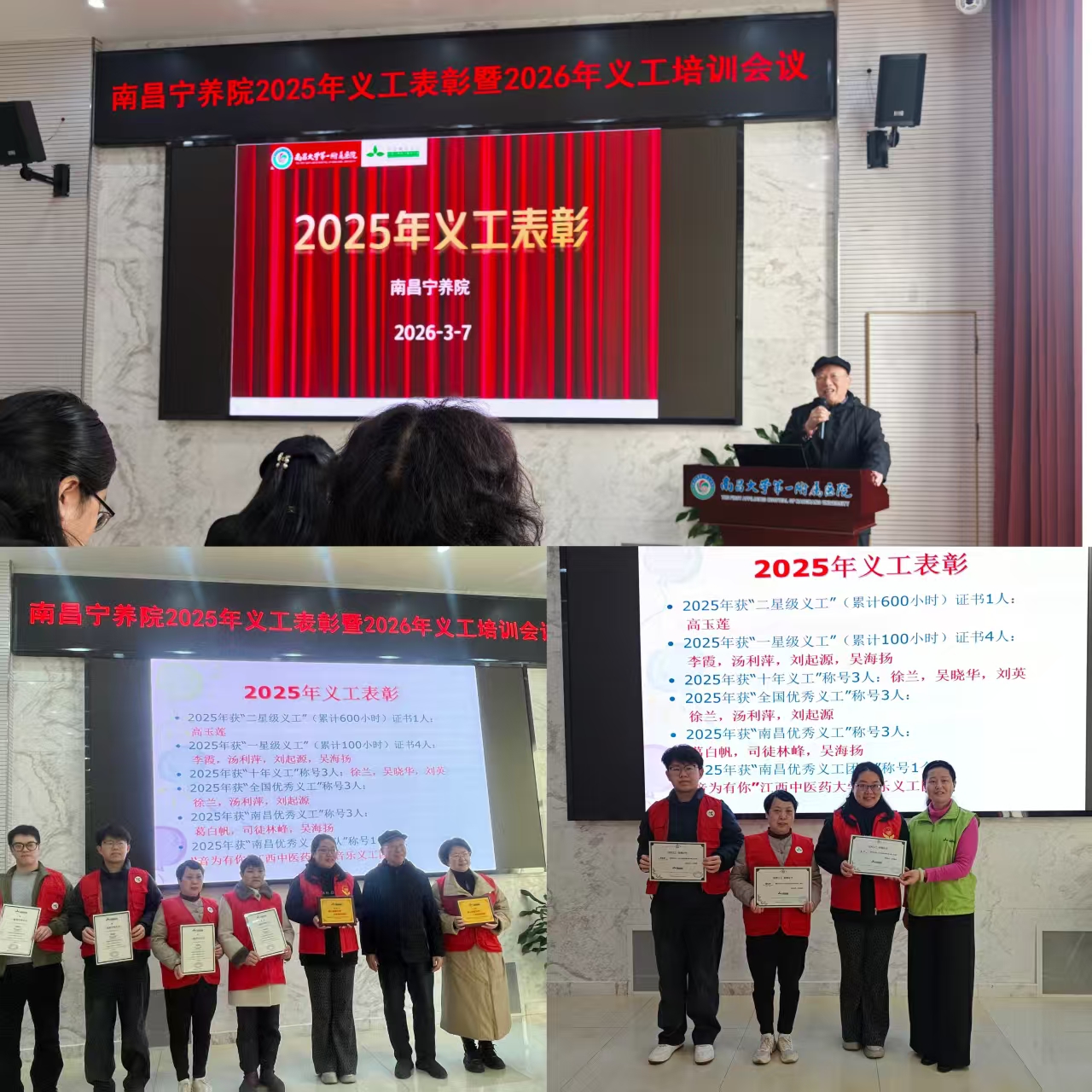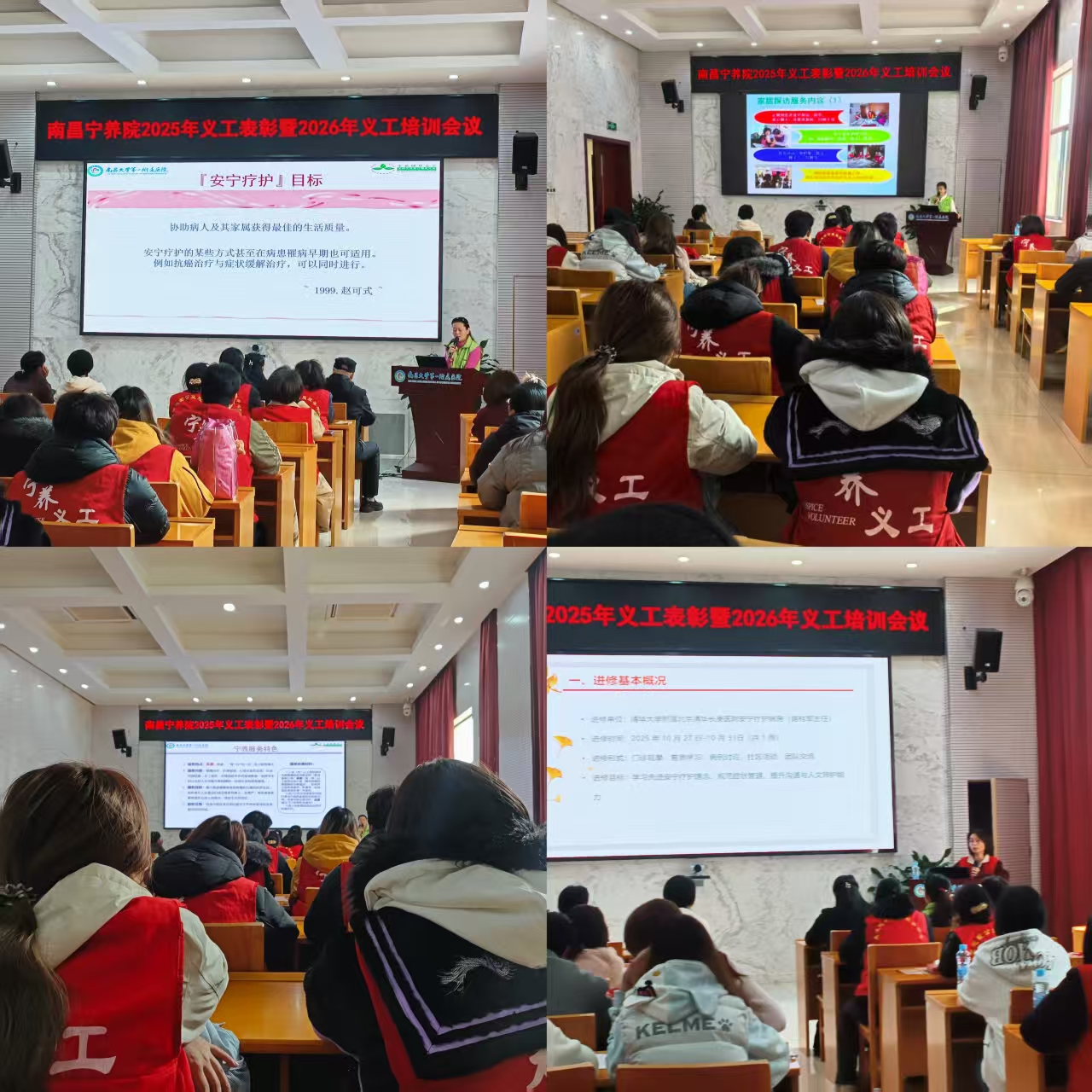 春回大地,万物复苏。2026年3月7日,南昌大学第一附属医院宁养院在南大一附院东湖院区二号会议室隆重举行“2025年义工工作总结暨2026年义工培训会议”。本次活动旨在总结志愿服务成果,表彰先进义工的奉献精神,通过专业培训提升团队服务能力,为新一年宁养工作的深入开展凝聚力量。