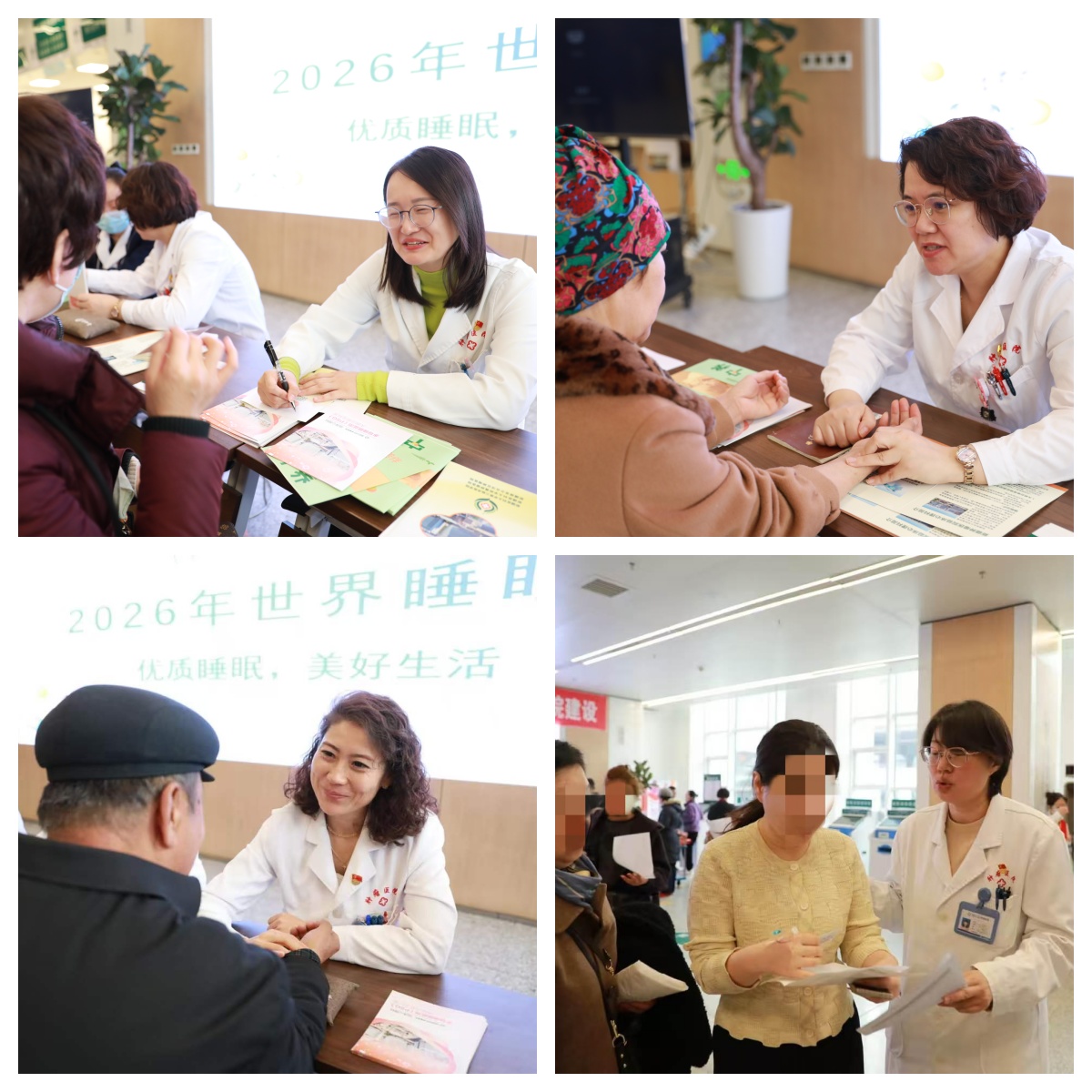 紧扣两大健康主题,义诊现场同步开展互动式健康宣教。在世界社工日宣传区,社工通过典型案例分享,生动展现医务社工在医患沟通、资源链接中的桥梁作用,增进群众对“医社融合”服务的理解与认同;在世界睡眠日宣传区,医护人员通过科普展板、趣味问答等形式,纠正“打呼噜就是睡得香”等常见误区,倡导规律作息、科学睡眠的健康生活方式,实现“服务+科普”双效合一。