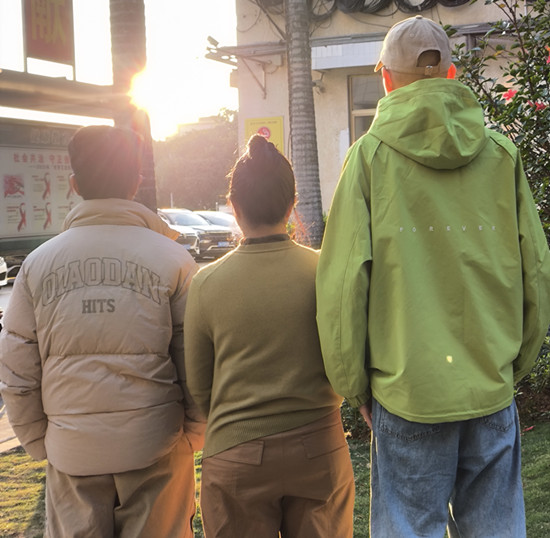 患者(右一)与妈妈和哥哥在夕阳下的温馨时刻