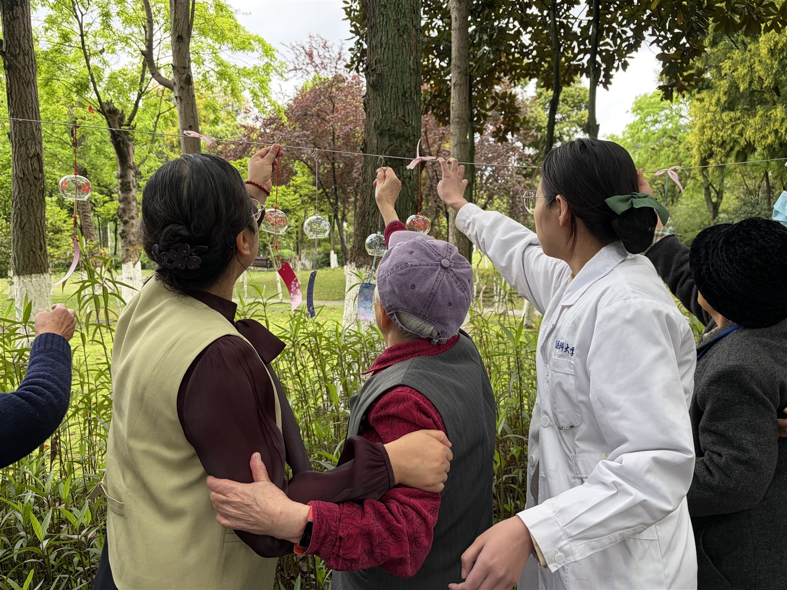为引导社区居民在清明节期间以温情方式寄托哀思,普及中医养生知识,提升社区居民对安宁疗护与宁养服务的认知与接纳,2026年4月3日,重庆医科大学附属第一医院宁养院联合重庆市璧山区青杠街道清明社区、重医附一院青杠老年护养中心、北京荣德利生慈善基金会及重庆护理职业学院,成功举办了“风铃寄思·春日有约”社区健康促进与生命关怀宣传活动。活动共吸引社区居民、患者家属等80余人参与。