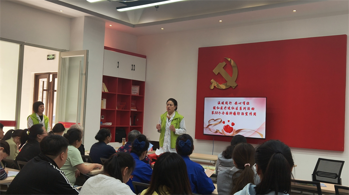 活动伊始,宁养院刘冰新主任紧扣全国肿瘤防治宣传周核心,向现场居民科普癌症防治理念,明确癌症并非不治之症,更不是生命的“终局宣判”,倡导大家将健康生活方式、积极心理状态、科学饮食习惯融入日常生活,深入浅出的讲解让在场居民频频点头认同。随后,刘主任详细介绍了宁养院的创办初衷、服务收治范围以及安宁疗护服务的社会意义,结合当下癌症发病率逐年上升、患病家庭不断增多的现状,讲述安宁医疗对癌症患者及家庭的重要价值,引发了现场居民的强烈共鸣。