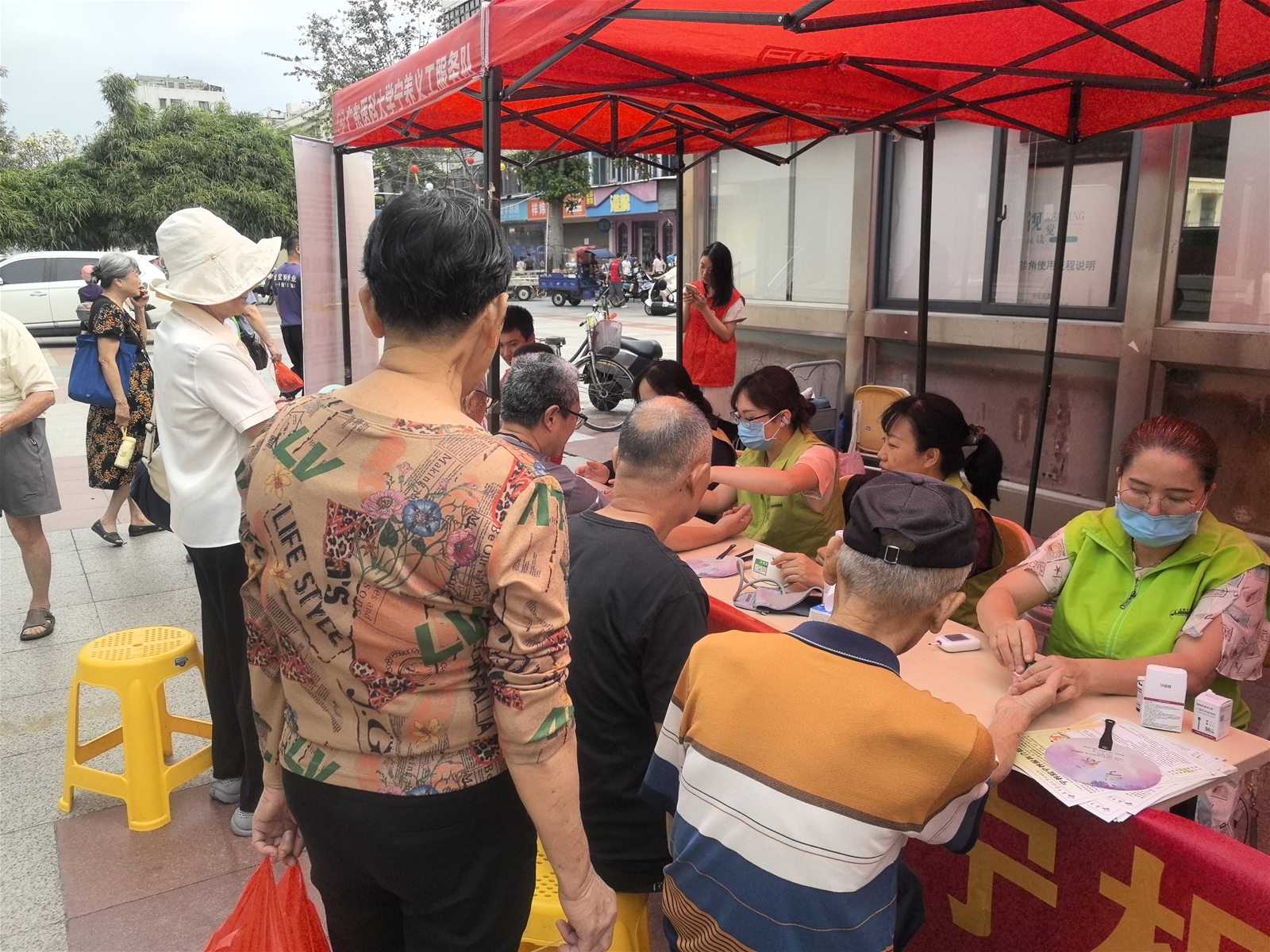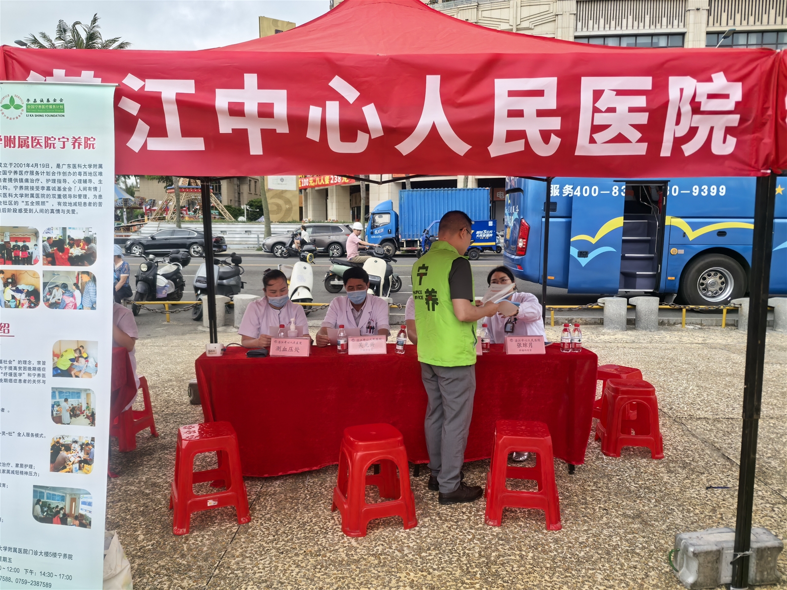 4月17日上午,湛江市主题宣传活动在霞山区渔港公园广场启动。本次活动由湛江市卫生健康局主办,经开区民政和卫生健康局协办,湛江市癌症防治中心、市疾病预防控制中心承办,多家医疗机构协同参与。活动紧扣“预防为先、筛查为重、早治为要”,设置视频宣传、健康义诊、早诊早治推广等板块。广东医科大学附属医院宁养院团队全程参与,为市民免费测量血压,提供一对一问诊咨询,细致讲解肿瘤预防等知识,普及宁养服务理念,让“抗癌路上,温暖同行”深入人心。