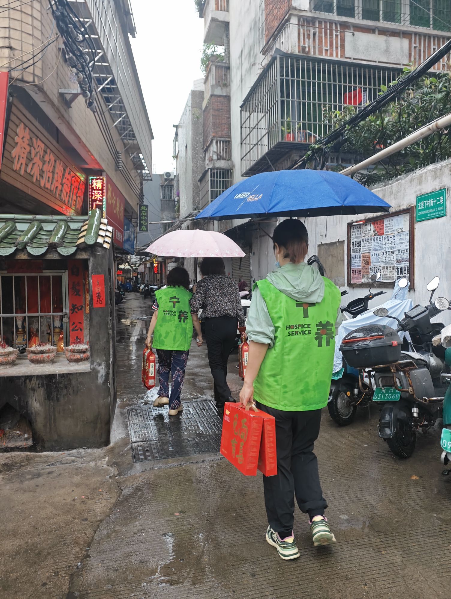 为传递李先生爱心与温暖,切实缓解困难癌症患者家庭的生活压力,改善晚期癌患身心状态,进一步提高癌患生存质量与生命尊严。39度的高温也阻止不了爱的脚步,不畏风雨、步履不停,雨水打湿衣角,道路积水难行,但也挡不住宁养团队暖心服务的脚步。2026年4月9日、10日、14日、24日,海南省人民医院宁养院组织医护及社工团队,开展困难癌患家庭特别慰问关怀活动,将暖心帮扶与人文关怀送到患者家中。