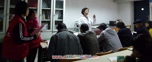 九点三十分,王明义主任主持会议宣布活动开始,兰大一院院长兼宁养院院长严祥,就“宁养服务、发展及宁养基础知识”发表了精彩的演讲,博得了现场听众的阵阵掌声;在演讲结束时,院长带领全体宁养工作人员、义工及听众一起观看了宁养知识的展览板,宁养院王主任向听众一一讲解展览板内容。