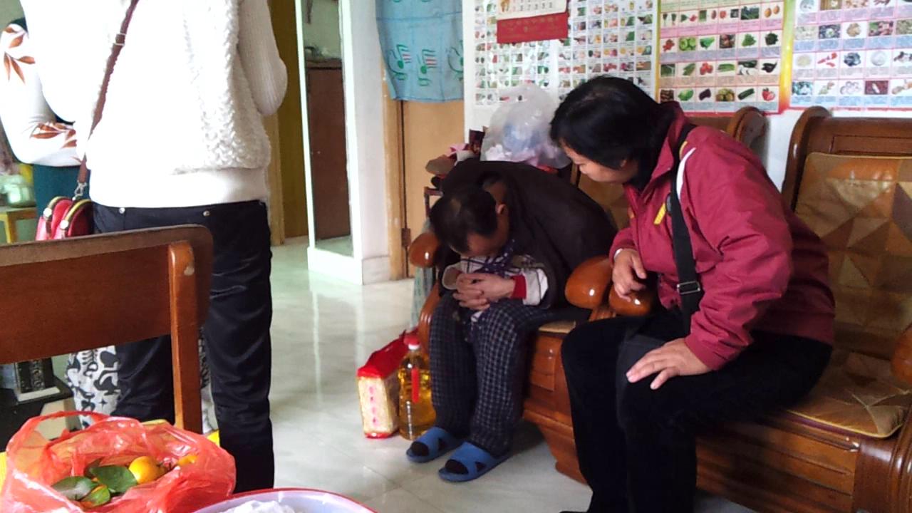 莫大姐和义工带着慰问品去探访患者黄叔叔