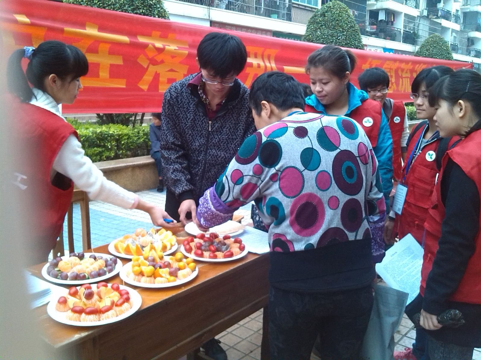 此次活动承接上次社区宣传的相关内容,即宁养知识宣传和关于宁养服务认知度的调查问卷。并新加入了由绿十字组织中的成员开展的防癌水果拼盘。