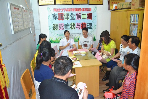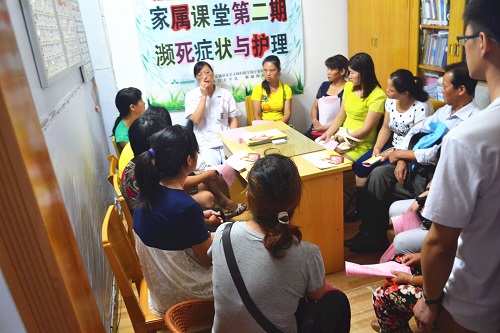 2014年7月15日,在南昌宁养院开展了“家属课堂”第二期第一次主题为“濒死症状及护理”的活动,旨在为家属讲解患者濒死阶段的症状,掌握濒死阶段舒适护理、心理、灵性护理的基本知识,提高患者濒死阶段的生活质量。