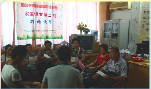 2014年8月26日,南昌宁养院开展家属课堂第二期第四次活动。主题为“沟通”,主旨是为家属提供与病人沟通困惑的支持,为家属提供与病人沟通的基本技巧,促进家属与患者的沟通。