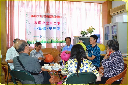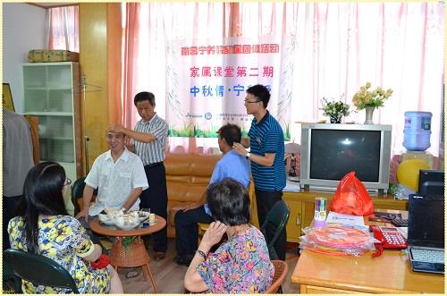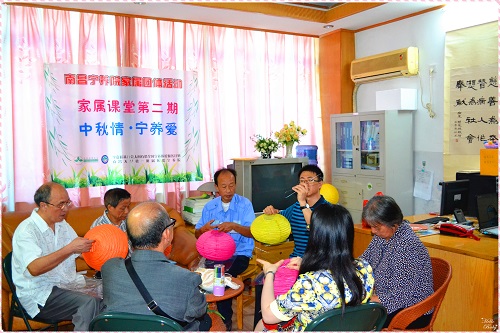 一年一度的中秋佳节在即,2014年9月5日,南昌宁养院为家属开展主题为“中秋情·宁养爱”的家属团体活动,旨在与家属共庆中秋佳节,帮助家属释放压力,并借助中秋佳节协助家属向病人表达情感。