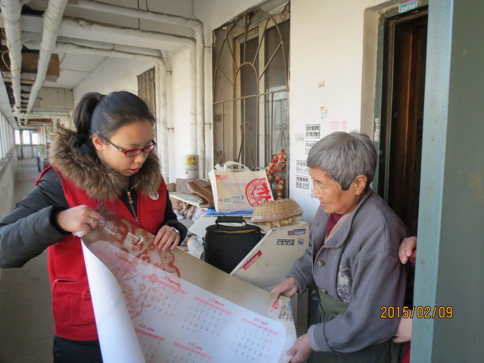 义工为家属送上日历