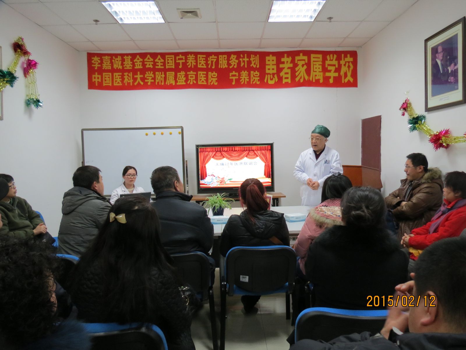 农历小年过后,沈阳宁养院又把2015年首次患者家属学校的主题确定为“无痛过年”。2月24日下午,正在接受宁养疗护的现症病人及家属、青年志愿者、义工和宁养院全体医务人员共四十多人参加了本场医患联谊活动。