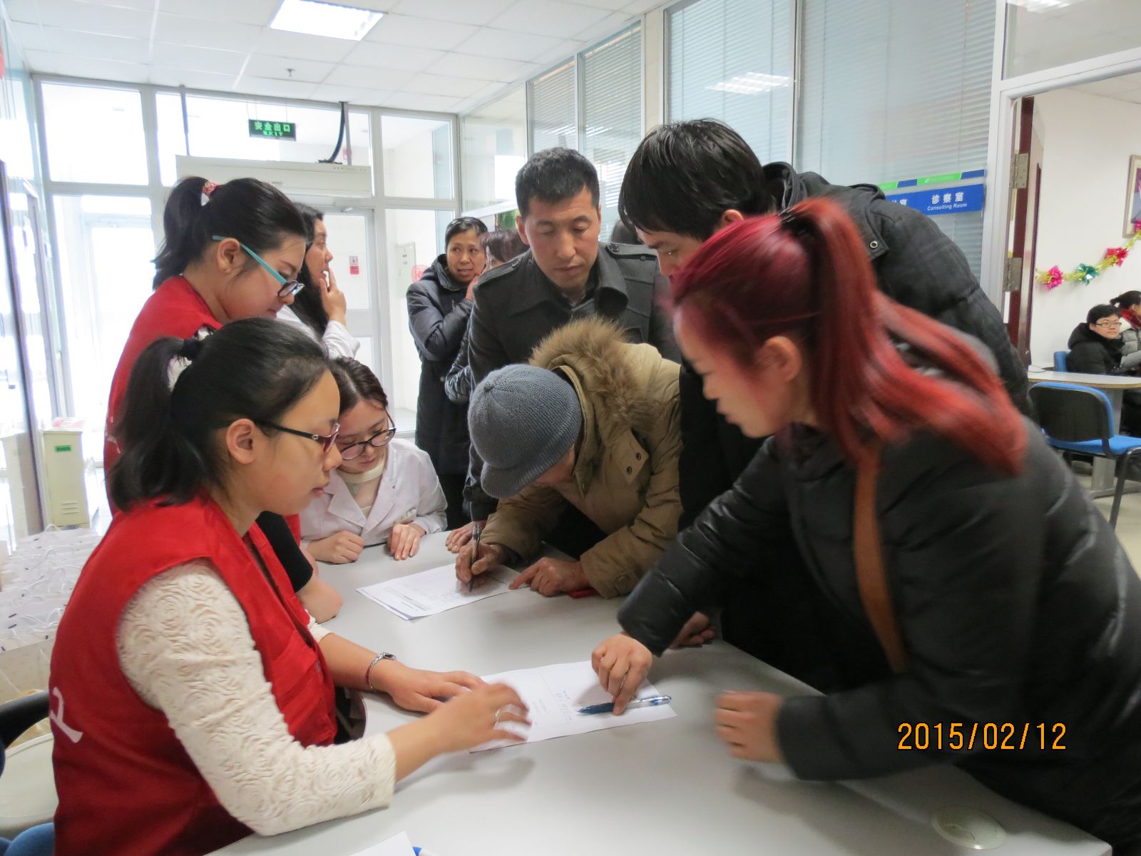 患者家属学校活动当日义工帮助家属签到