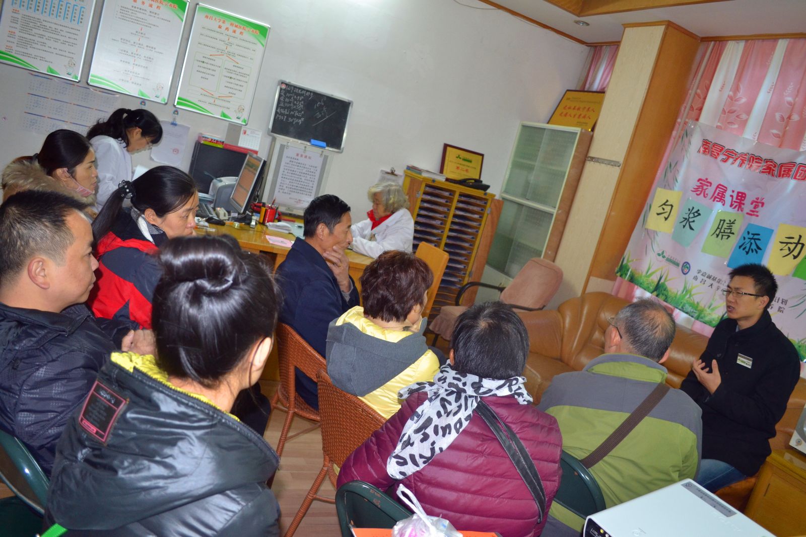 2016年11月24日,星期四上午,南昌大学第一附属医院宁养院开展“匀浆膳•添动力”家属活动,旨在通过讲座对癌未患者家属提供饮食指导。
