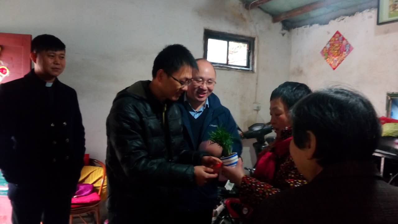 为使南昌大学第一附属医院宁养院的贫困晚期癌症患者家庭感受到来自宁养院及社会的关怀,度过一个温暖、喜庆的春节,宁养院根据患者的家庭经济、照顾者等情况,筛选出家庭贫困的患者并进行走访慰问。2017年1月25日,南昌宁养院社工带着“暖心行动”小组的社会义工开展春节关懷活动,为宁养院五个困难户家庭之晚期癌症患者送去新春祝福。