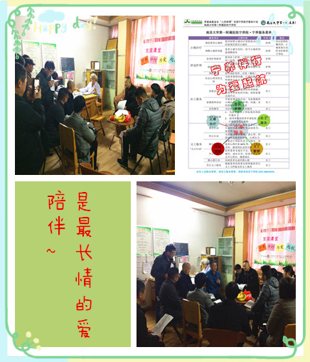 为让家属更好地了解宁养院服务内容,及时根据需要联系宁养院提供相应支持,给予患者更好地陪伴,南昌大学第一附属医院宁养院于2017年2月16日开展主题为“宁养伴行·为爱起航”的家属团体活动。在活动里以另一种方式向家属介绍宁养服务内容 -- “点单式”服务,将宁养服务内容整理归类形成服务菜单,根据患者的需求,家属以点单方法向宁养院申请服务,希望将宁养服务更清晰、准确的传达给患者及家属。