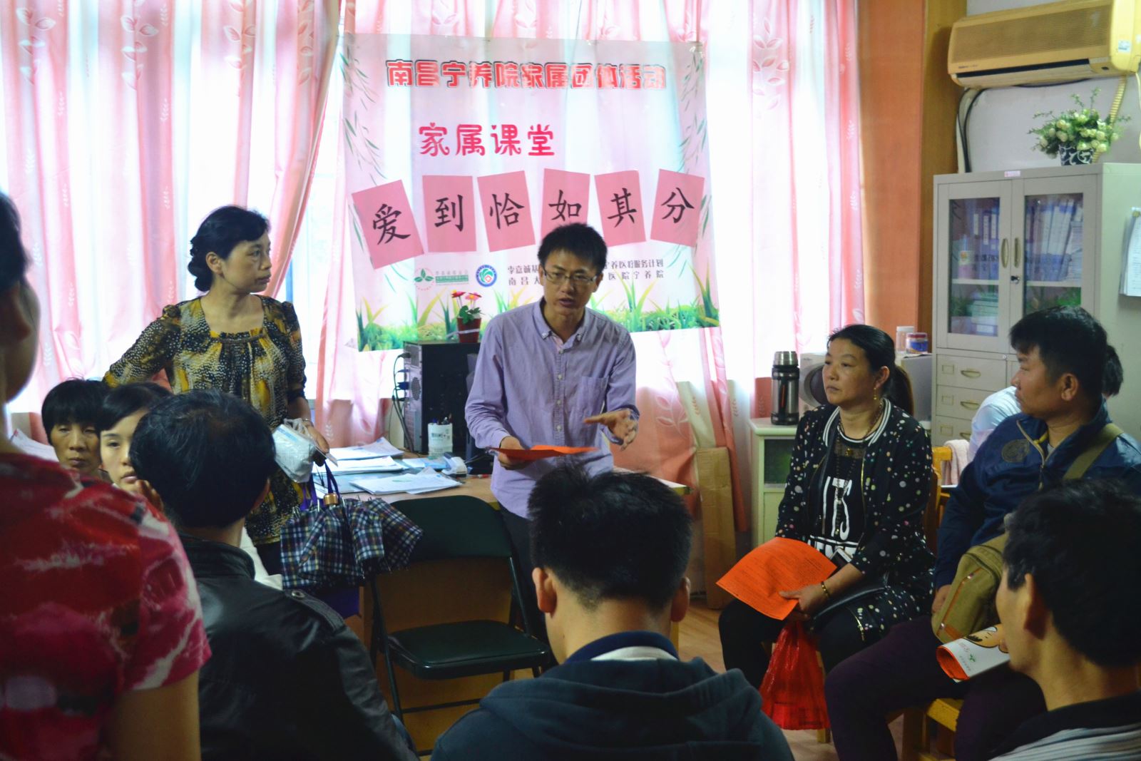 宁养院服务对象为癌症晚期的患者,大部分患者正在经历濒死或即将进入濒死阶段;在服务过程中,宁养院工作人员能够感受到患者家属对患者的爱。然而,家属却不知道如何恰当地表达爱,给予患者适当的照护。南昌宁养院针对服务过程中遇到的问题,于2017年6月15日,在宁养院开展“爱到恰如其分”家属濒死教育团体活动,旨在指导家属了解患者濒死阶段的主要症状,为家属提供濒死症状照护指导,以缓解家属面对相关情况出现的焦虑,让家属学习向患者如何恰当地表达爱与关怀。