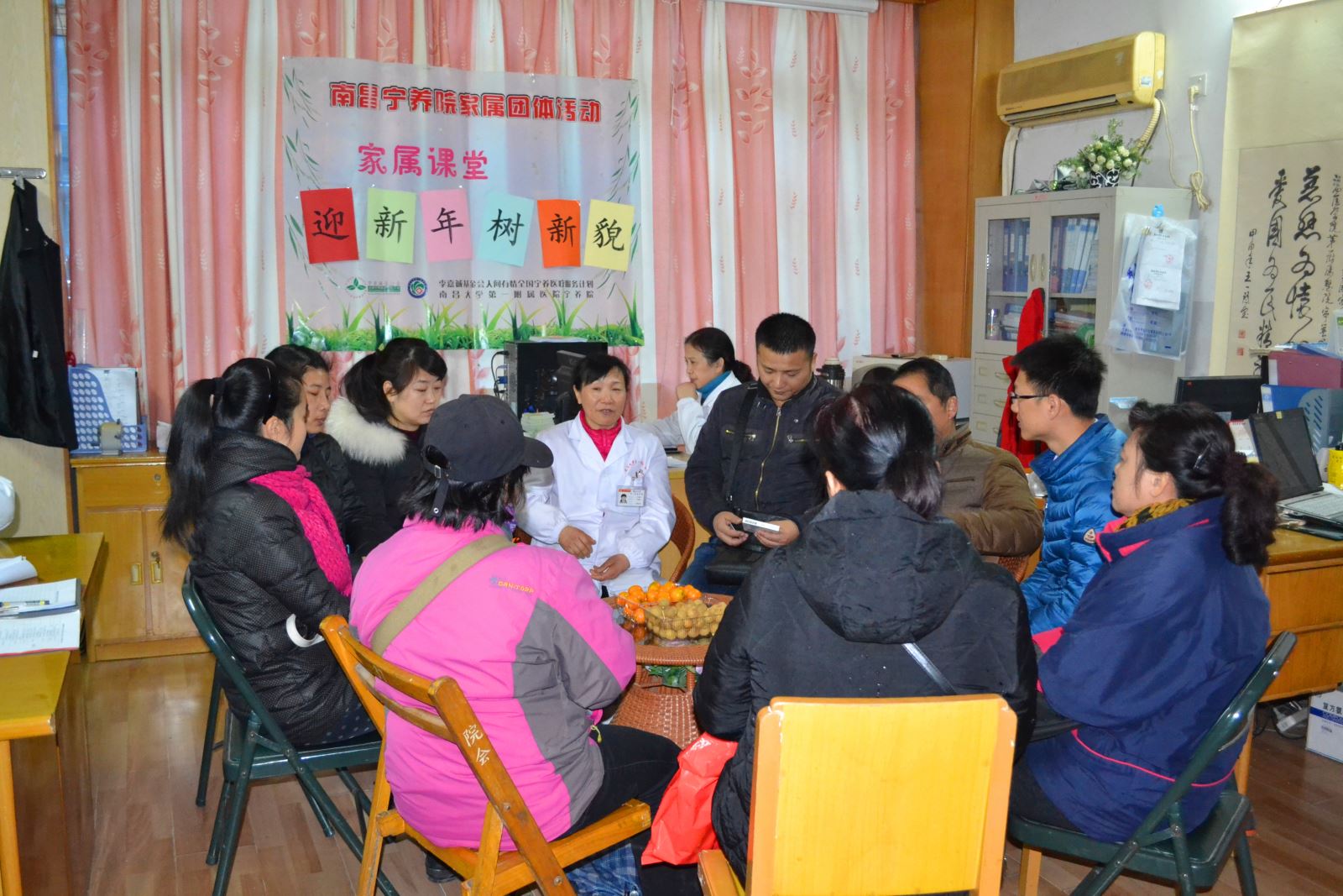 2017年12月28日,南昌宁养院开展“迎新年·树新貌”家属支持团体活动,与家属一起庆祝新年的到来,同时引导和鼓励家属制定健康生活计划,并带领患者一起制定健康生活计划,调整身心灵状态,用新的面貌迎接新年,本次家属团体活动共有14人次参与。