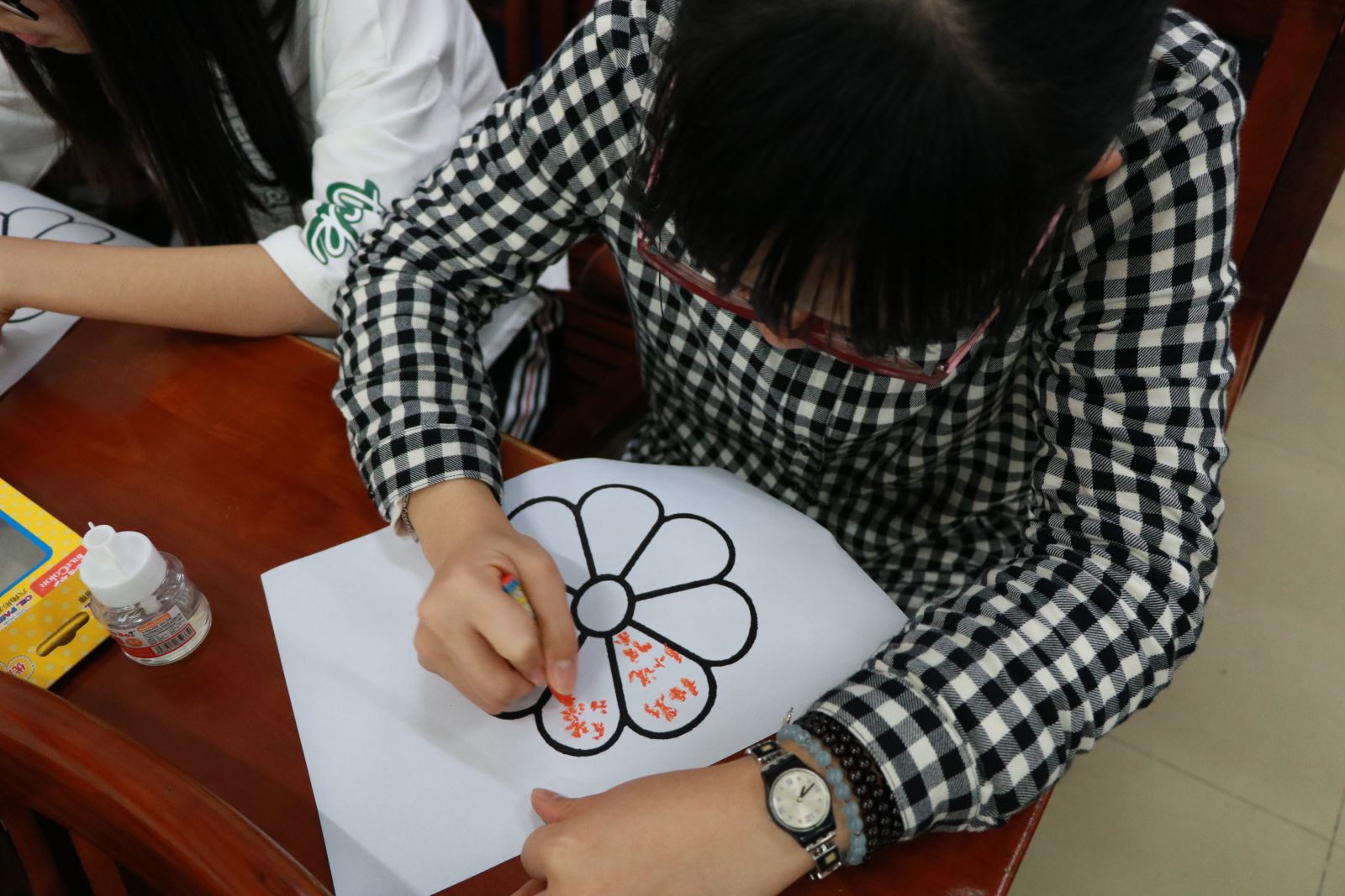 “患者很多时候都需要我们的关心与陪伴,我们在他们身上学习尊重、敬畏生命的同时,我们的活力和认真也能带给他们对生活的热爱和期望。今晚看到青春洋溢的大家,相信大家在以后的相处和服务过程中也能如今日般团结友爱互助,将这份力量和爱带到患者及其家庭中去,让他们的生活更加丰富与精彩。” 余老师在活动的最后再次表达了对宁养大家庭的热爱以及对新一批义工和干事的希冀。听完老师的分享,义工们认真地在卡纸描绘上,并把之前的太阳花贴在卡纸上,完成活动最后一步,组成一张张代表着阳光和力量的海报。