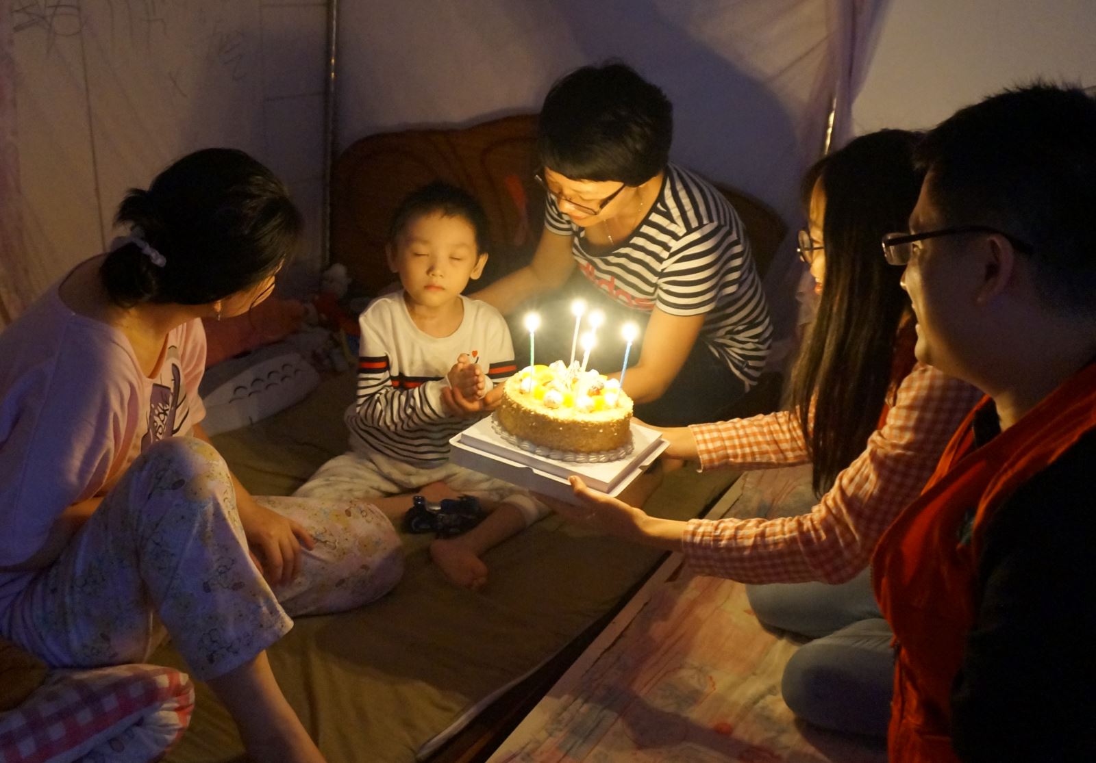 《宁养欣光》拍摄于一位年仅4岁的患者“小朝阳”家中,展示了宁养院日常服务工作的场景。画面正中,小朝阳双目微合、静坐在燃着蜡烛的蛋糕前默许心愿,小小的烛光照亮他平和专注的面庞、也驱散周围的幽暗;身旁的护理师李瑞娜阿姨双手环绕、轻护着他,与他的妈妈和义工哥哥姐姐一起将温暖的目光投向他。