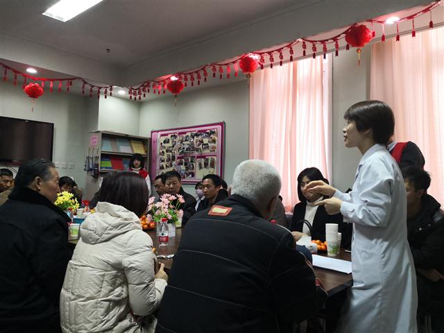 春节来临之际,宁养院全体医生护士以及义工们,通过门诊宣传、电话回访邀请了30余位家属来到宁养院参加此次活动。早在活动当天八点钟,我们几个义工就已经来到宁养院布置会场,为家属们准备了丰盛的水果、点心和小礼品。绿色的植物配上鲜红的装饰,将宁养院渲染上了一层欢快的氛围,浓浓的年味充斥着整个会场。