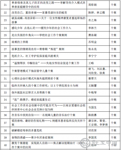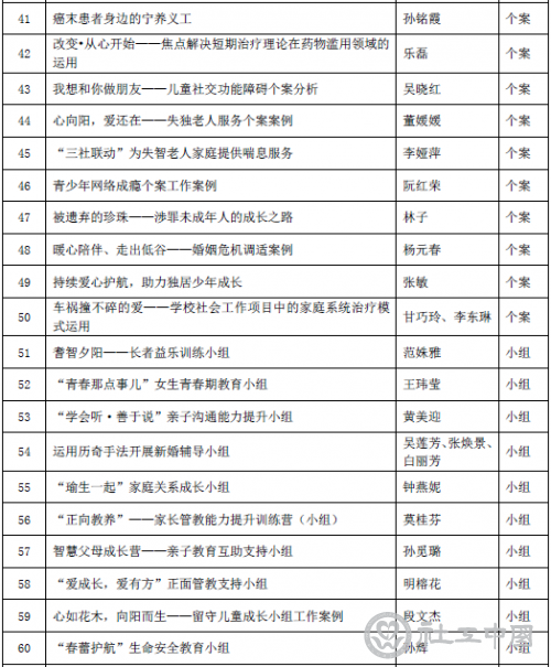 附第二届(2018年度)全国百优社会工作专业服务案例入围名单