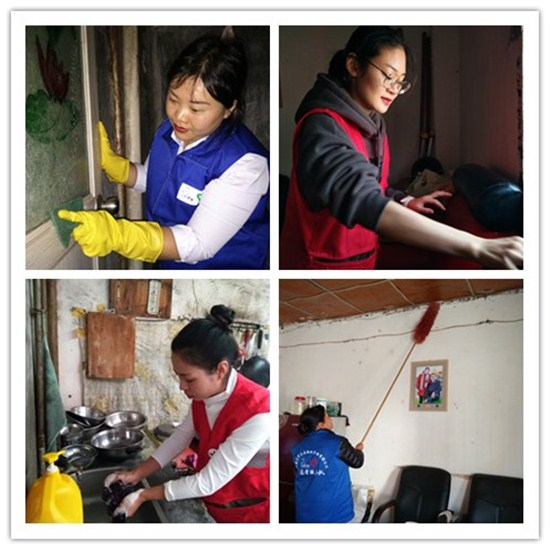 15:00时,大家来到了接受宁养服务的患者王叔叔家,与王叔叔简单的交谈后,每个人自觉分工干活。茶几、桌椅、沙发、房门、窗户、天花板、卫生间、厨房通通被我们包围,无一落下。忙,不亦乐乎!