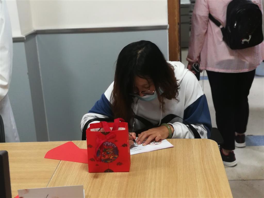 在大家情绪平复后,社工姚荣引导大家把自己想说的话写在卡片上,送给患者、其他家人或者自己。通过这种带有小小仪式感的形式,让家属有机会表达出自己真实的感受,以此缓解压力。有一些家属因为不会写字表达,工作人员和义工会帮助代笔。还有家属写了卡片送给宁养院,表示非常感谢宁养院不仅让患者减轻痛苦,也让他们感受到了温暖和陪伴。活动最后我们向参加活动的家属赠送了我们准备的月饼,几块小小的月饼代表了我们深深的情谊。