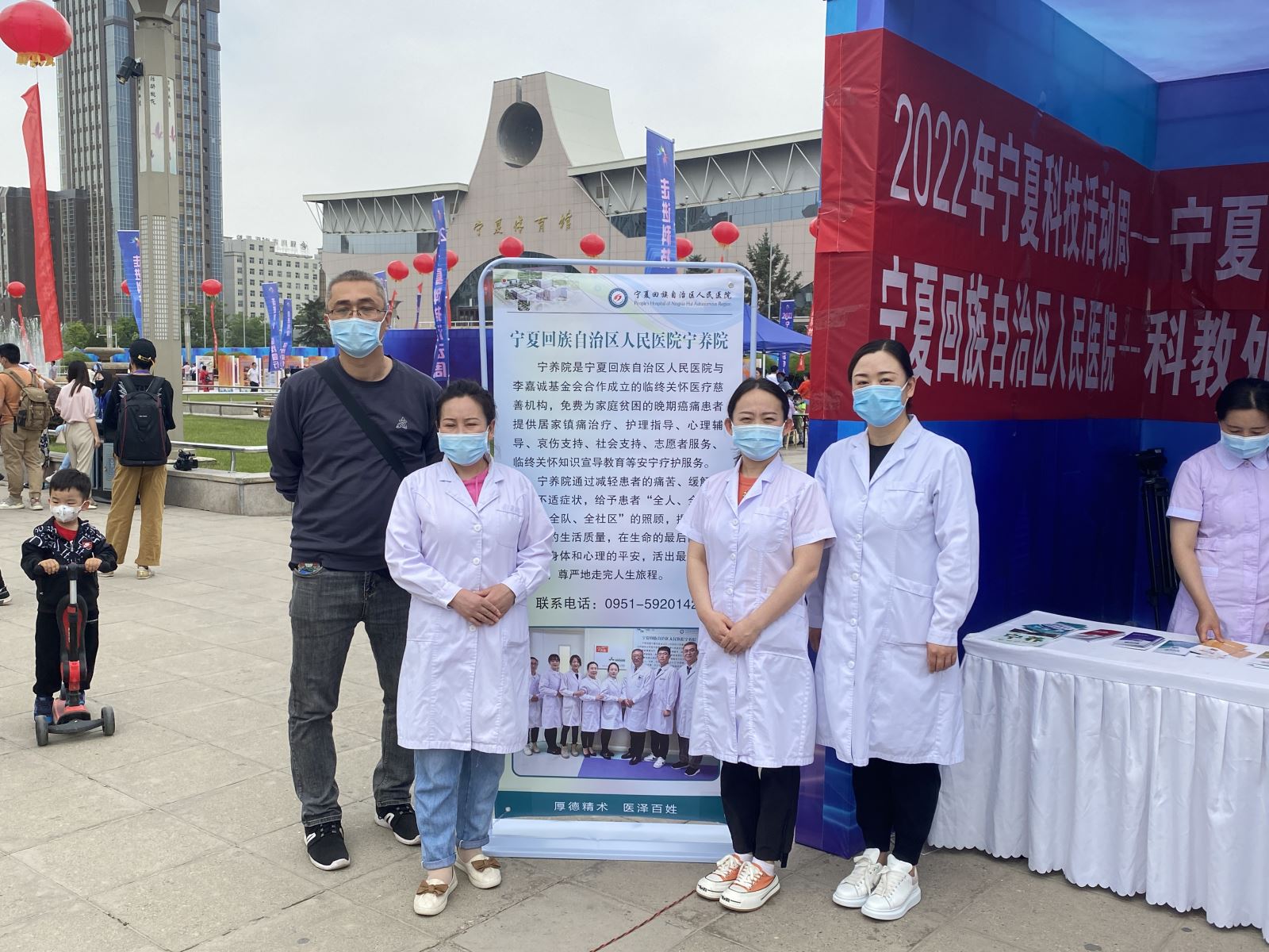 2022年5月28日,宁夏“2022年科技活动周”启动仪式暨主场宣传活动在银川光明广场举行,宁夏回族自治区人民医院宁养院受邀参加本次活动,累计为50余名市民提供健康检查及咨询,发放宣传资料三百余份。