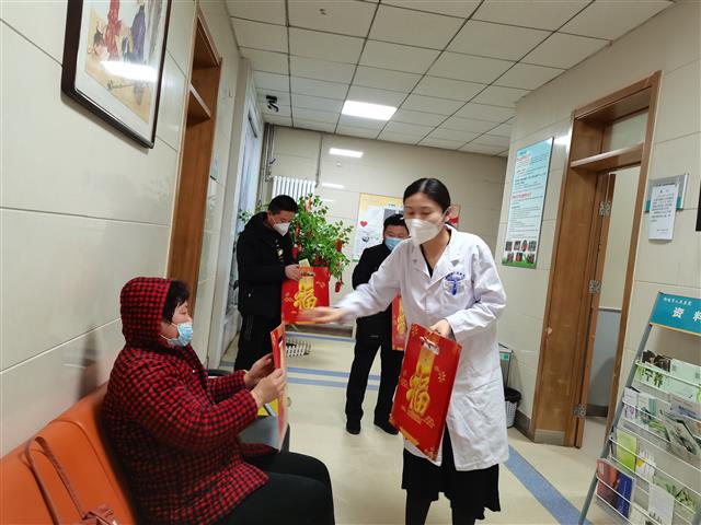 2023年1月17日和1月20日是春节前家属们最后两次取药的时间,往年这个时候宁养院都会举行送“福”活动。今年由于条件限制与安全考虑,对往年春节前都会举办的送“福”活动进行了简化。不再将家属们聚集在相对封闭的会议室一起举行活动,而是在宁养院走廊里和大家进行了简单的交流和沟通,并送上了工作人员提前准备好的“福”袋。希望这小小的礼物可以带去聊城宁养院全体工作人员真挚的祝福。