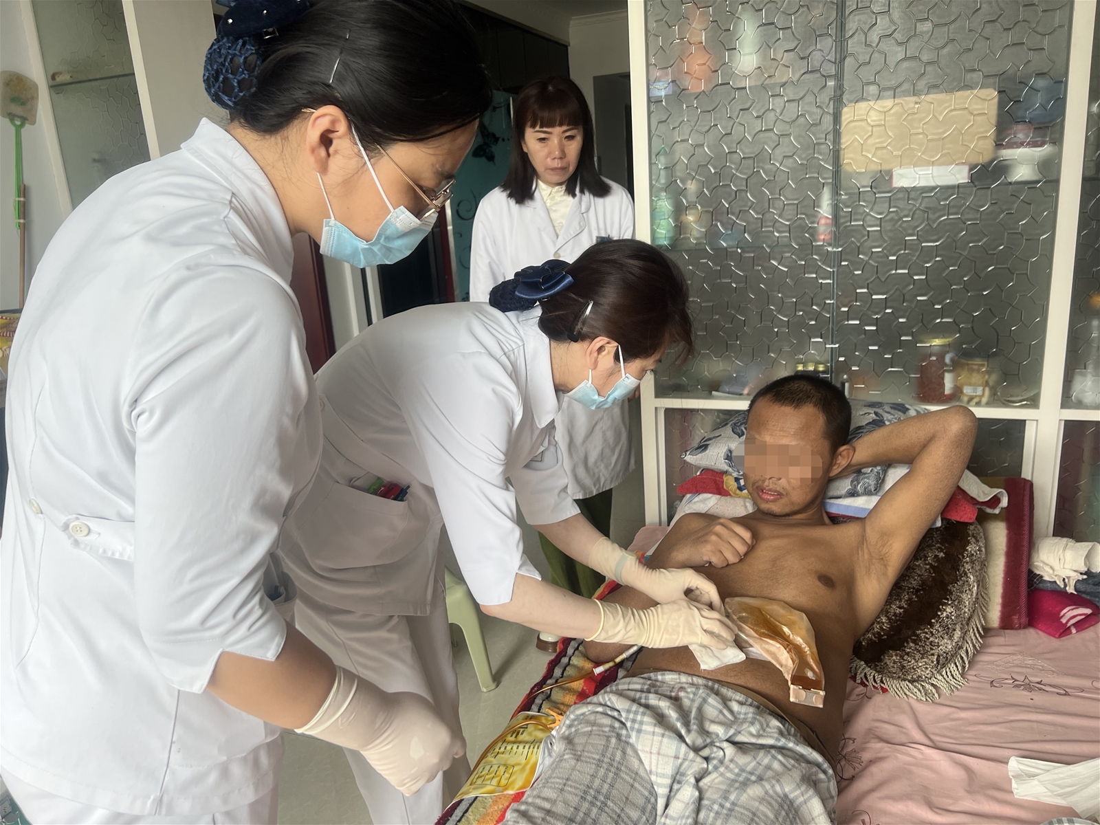 2023年5月20日,山西省肿瘤医院宁养院携手泌尿科伤口造口专科护士开展送医上门服务,让晚期癌痛,行动不便的患者足不出户享受到了高质量的医疗服务。当天下午3时30分,宁养院刘冰新主任和泌尿科伤口造口专科护士杨振亚一行4人,带着换药箱一同来到了宁养患者小常家中。