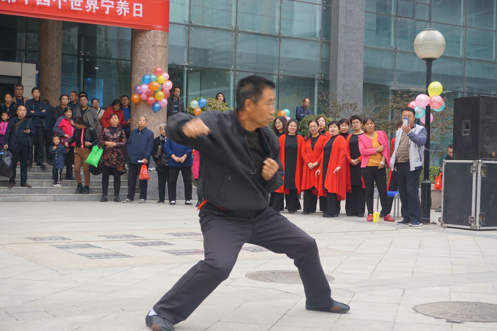 为了活跃活动气氛山西省肿瘤医院宁养院牛润桂主任和自己的患者示范游戏动作和规则,气球掉了、气球破了,大家哈哈大笑。打算做游戏的人更多了,我们选了肿瘤患者来玩这个游戏,跑一跑笑一笑,希望他们能把抑郁的情绪发泄一下。 活动快结束了观众们的热情依然不减,有一位大哥找到我们说想要为大家表演《中国武术》,俗话说:“行家一出手,就只有没有”这位大哥动作行云流水、刚劲有力、气吞山河、虎步生风、势如破竹。我的相机快门都不捉不到大哥的图像,看相片都能感觉到大哥出拳的速度与力量。